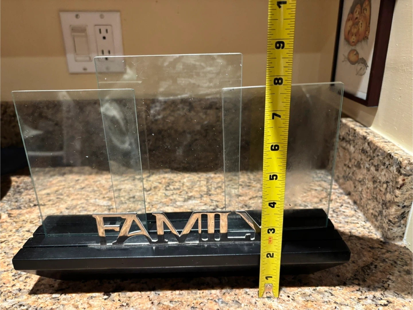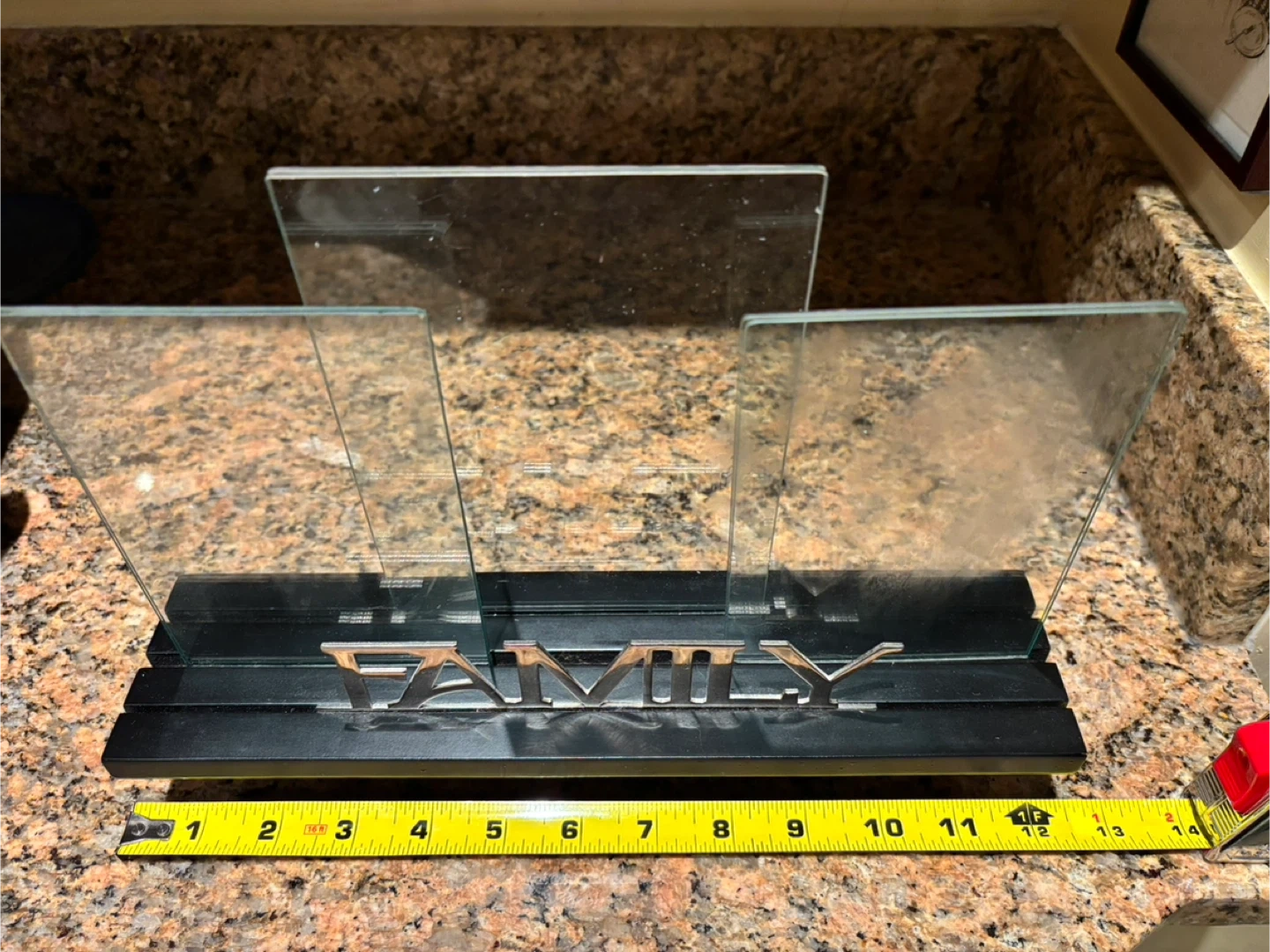 Here's a nice multi-picture frame with a "FAMILY" design. It measures approximately 13 inches in length and 7 inches in height.