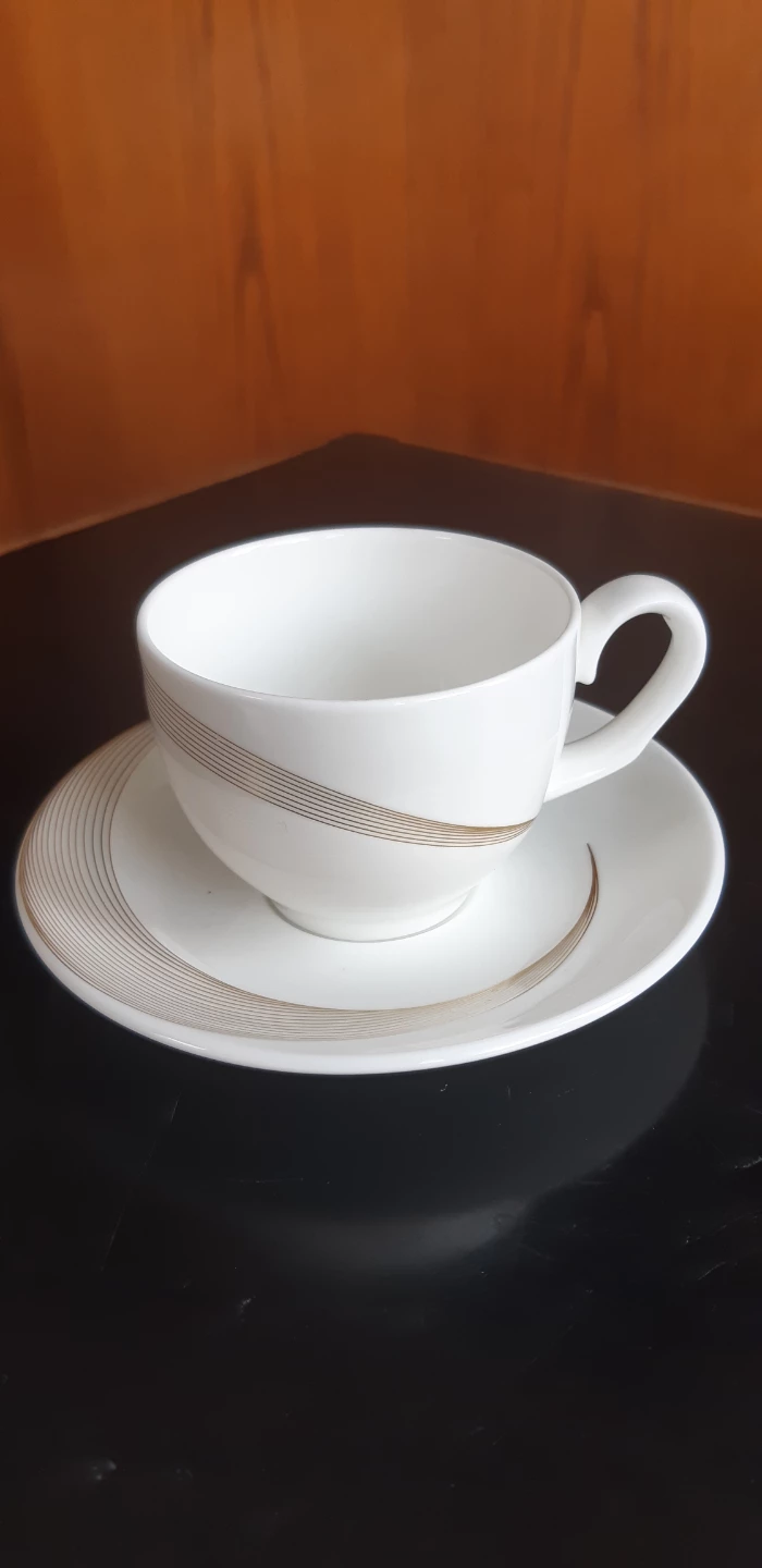 This elegant set of 8 small cups and saucers features the Tranquillity pattern.