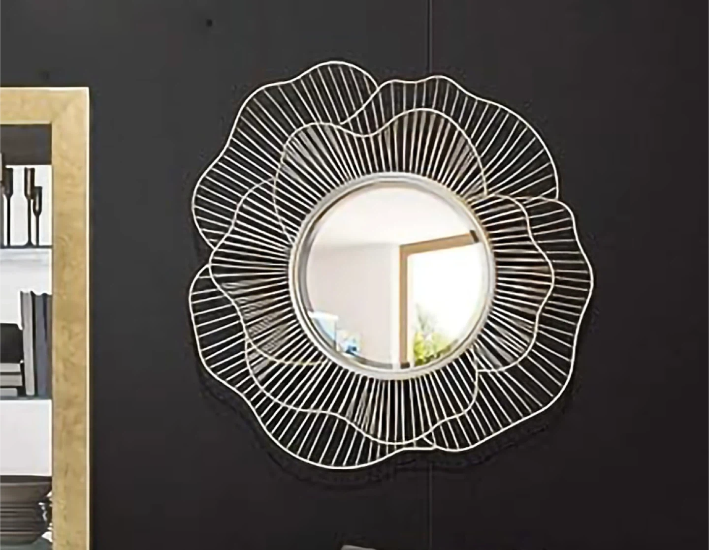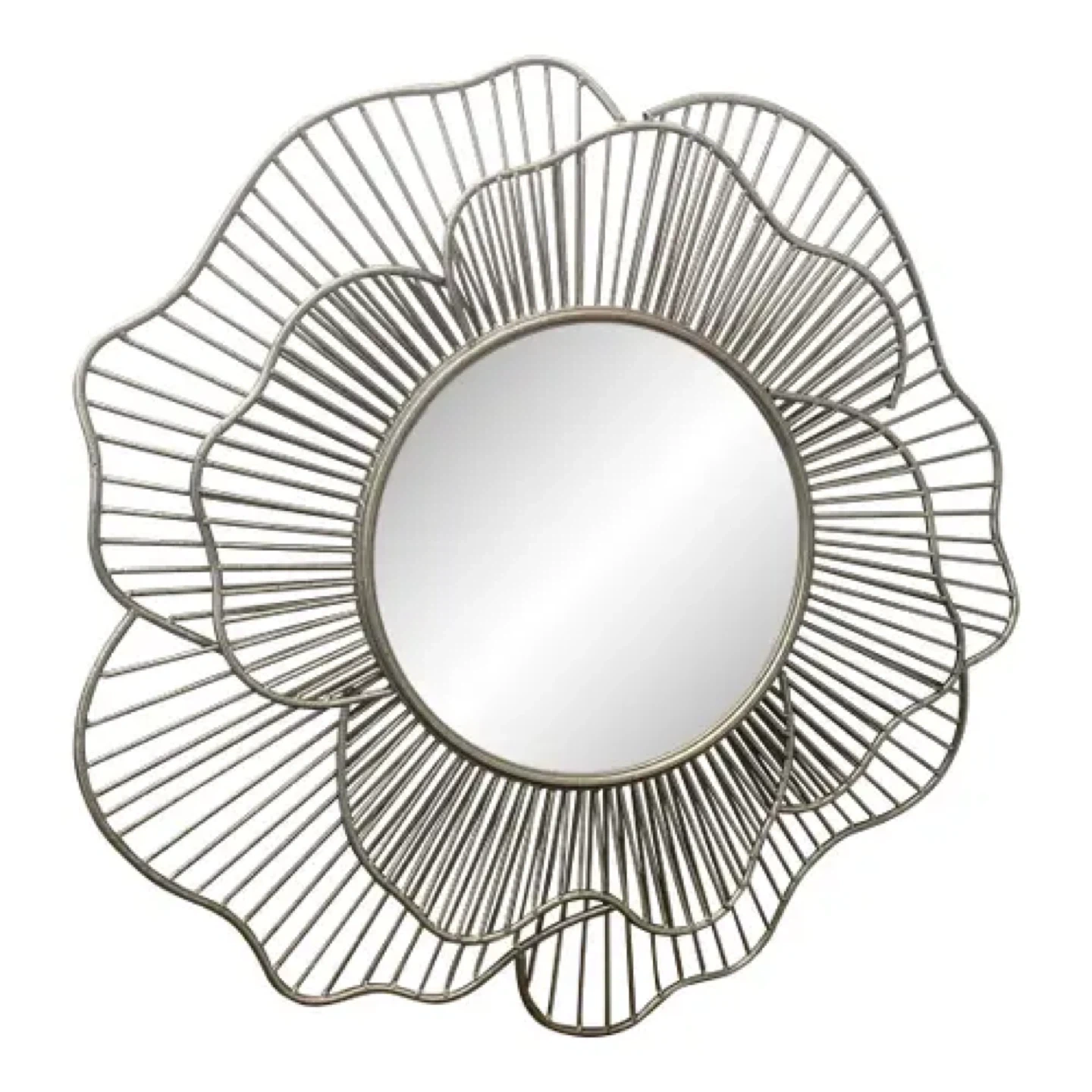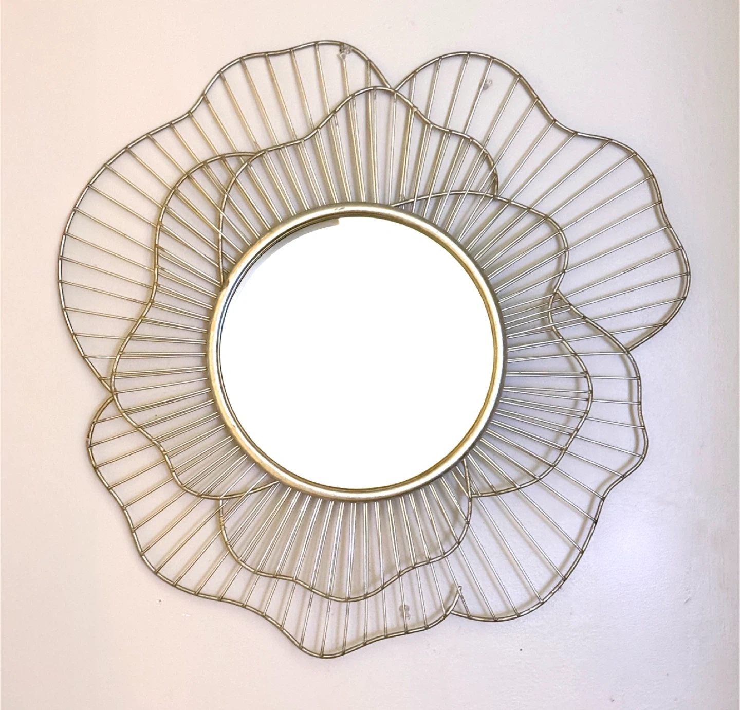 Add a touch of floral elegance to your space with this beautiful flower-shaped wall mirror! The gold metal frame gives it a chic and modern look. Perfect for any room in your home!