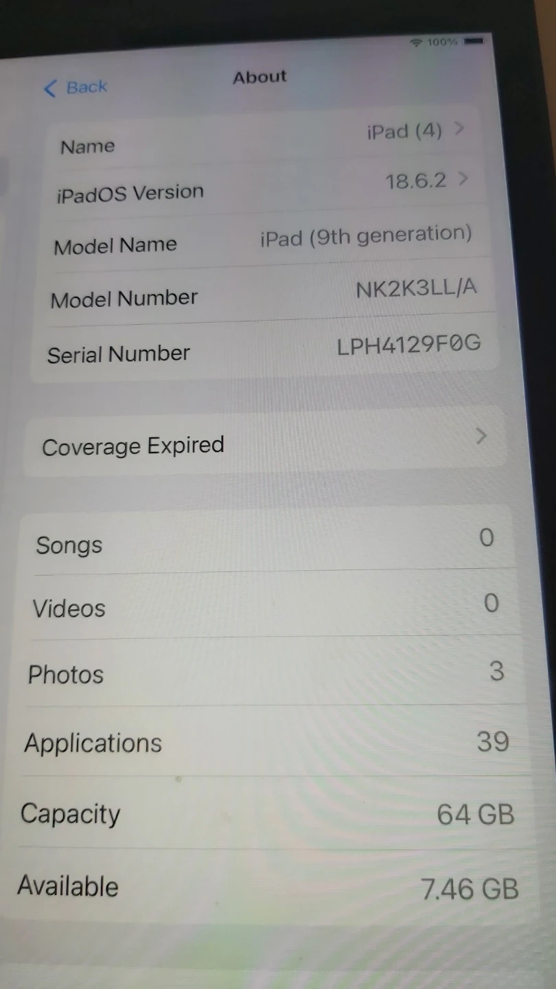 Ipad 9th generation 64 GB, bought last year
