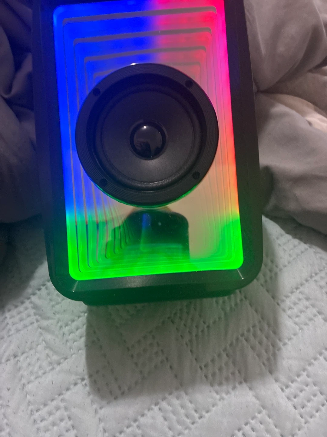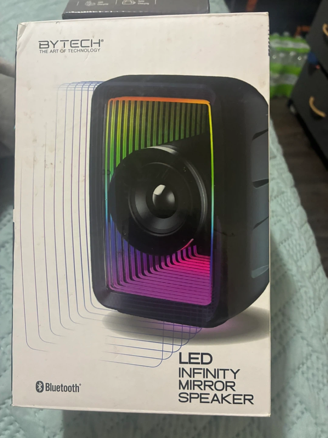 Selling a BYTECH LED Infinity Mirror Speaker! It's Bluetooth compatible and comes in its original box. This speaker is perfect for adding a cool, modern touch to any room with its unique infinity mirror effect.