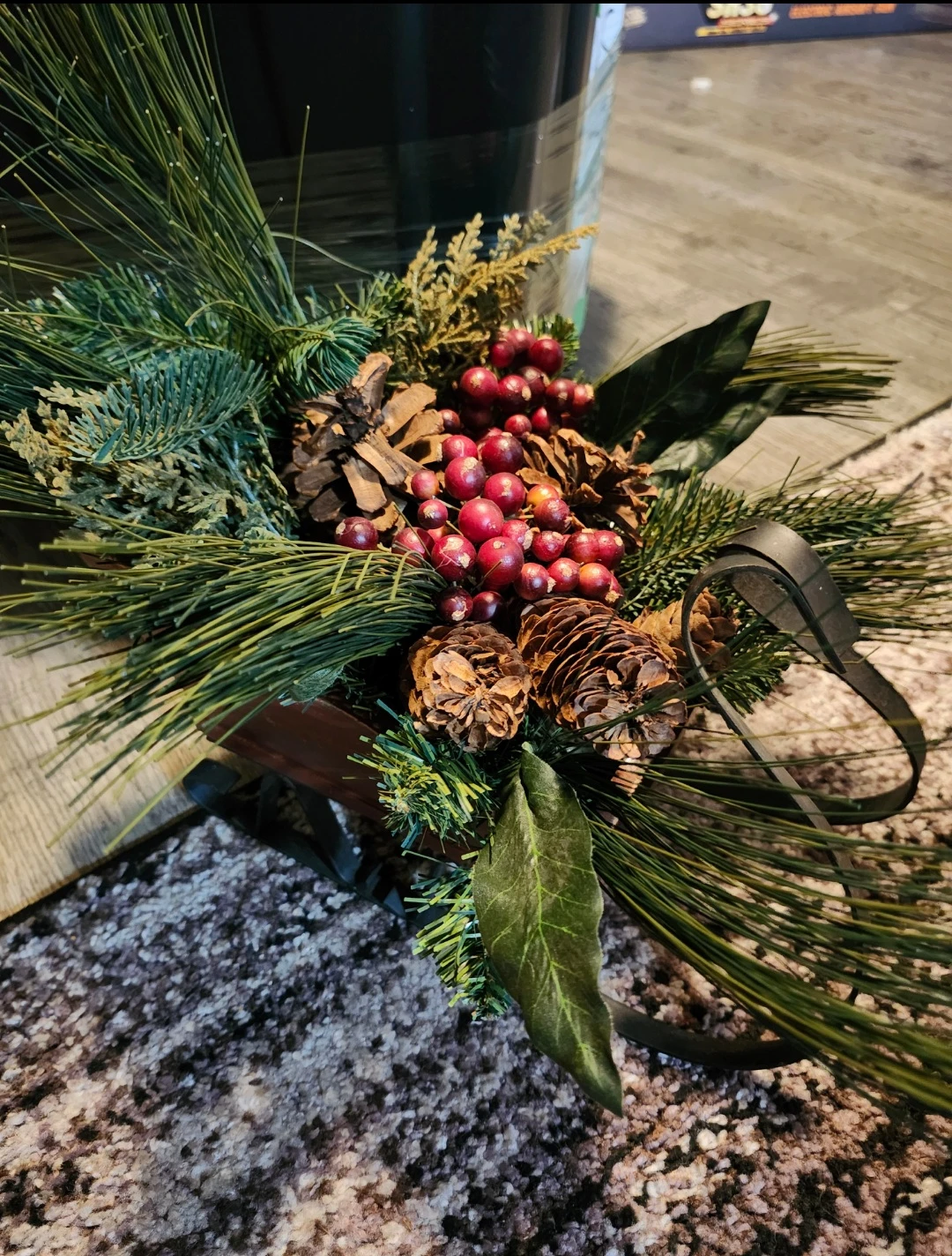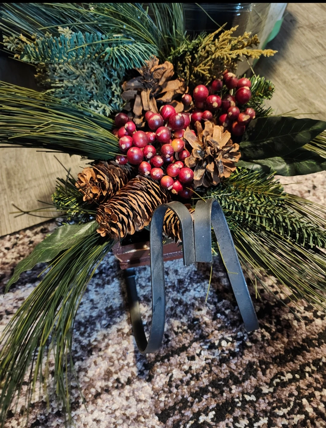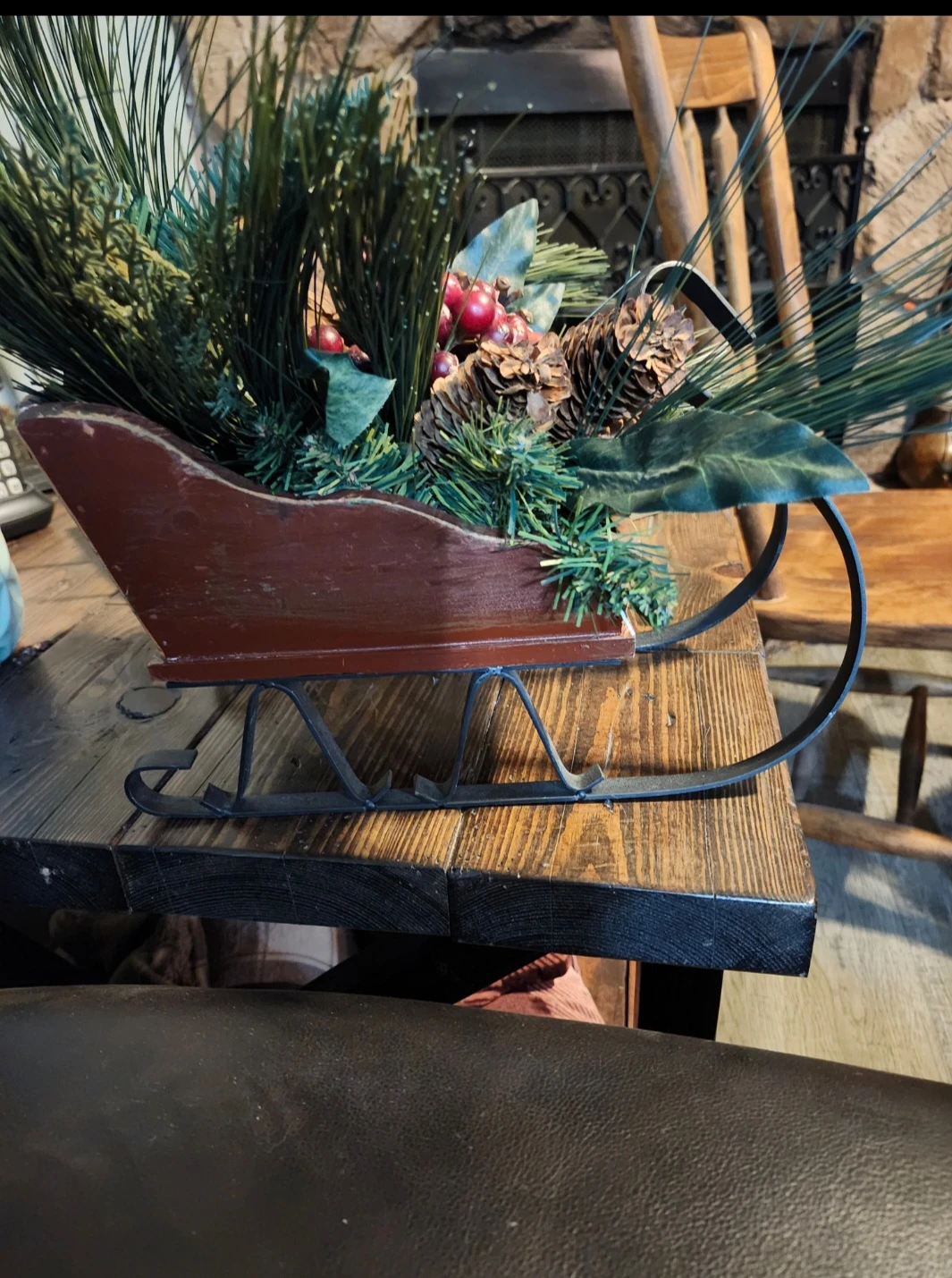 Wooden/Metal Sleigh with Pine and Berries