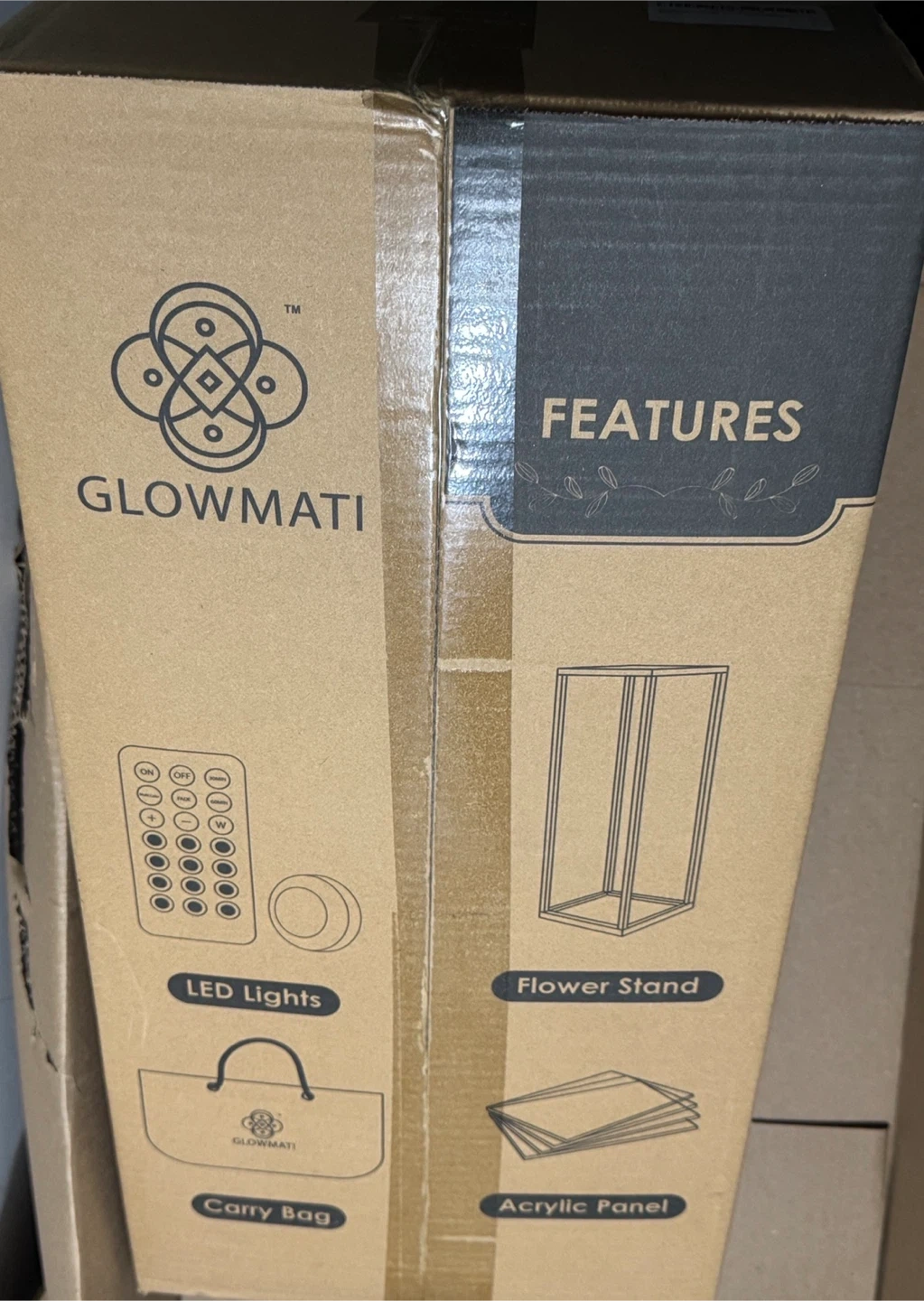 Selling a brand new Glowmati flower stand for events and decorations! It comes with LED lights, an acrylic panel, and a convenient carry bag. Perfect for adding a touch of elegance to any event