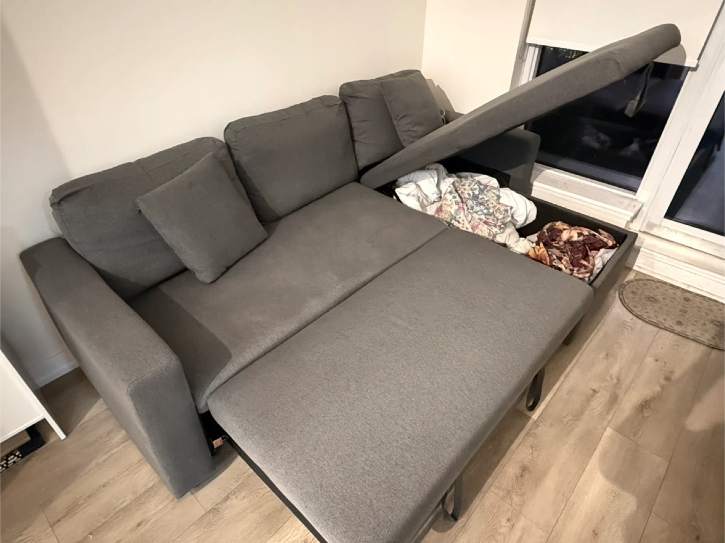 🛋️ Modern Grey Sectional Sofa Bed with Storage – Excellent Condition (Gently used)