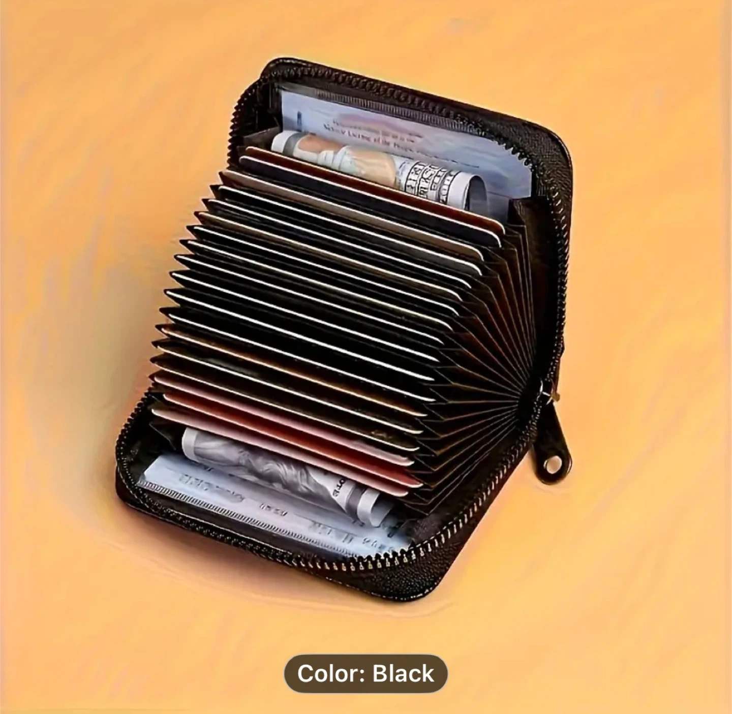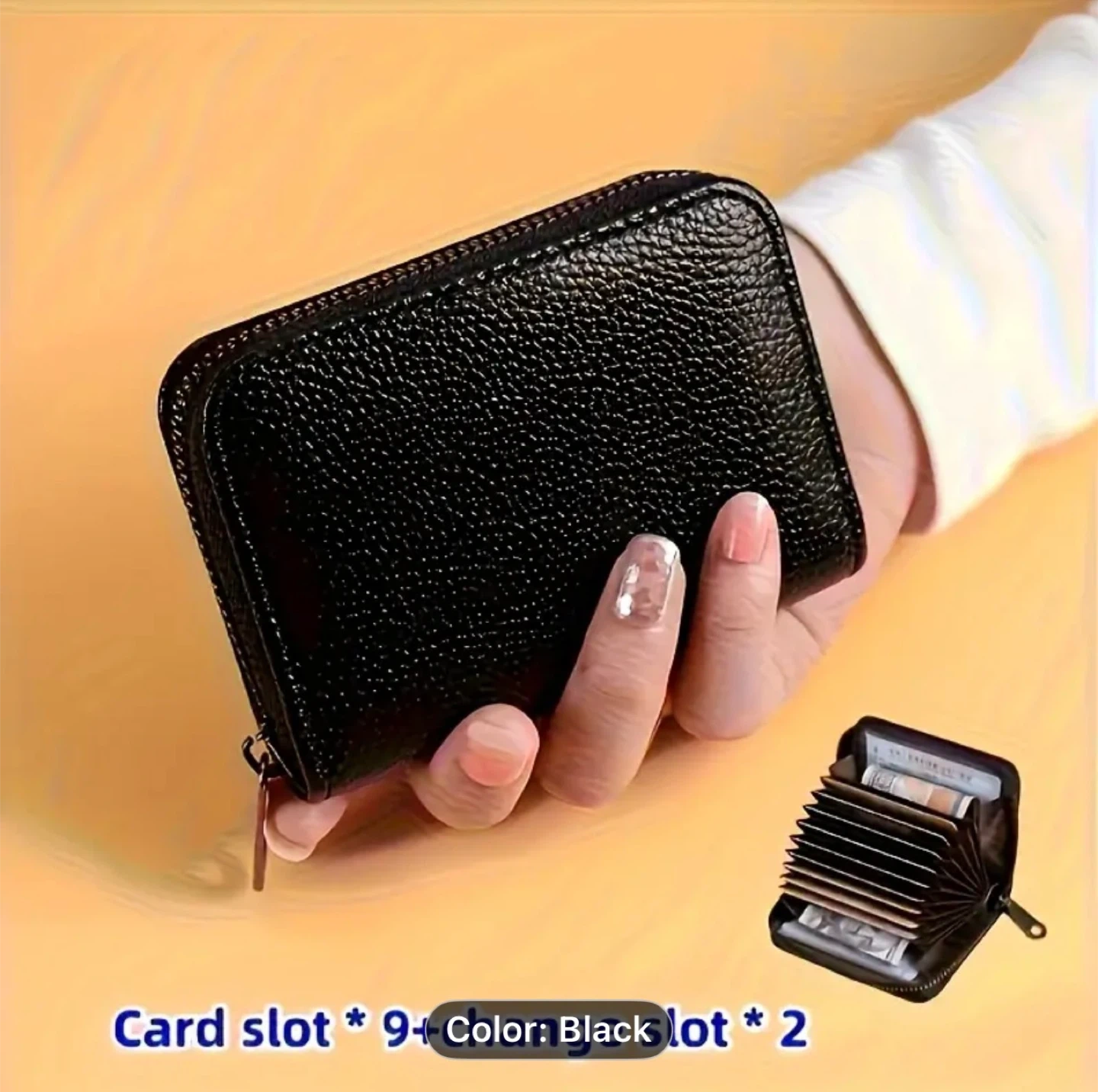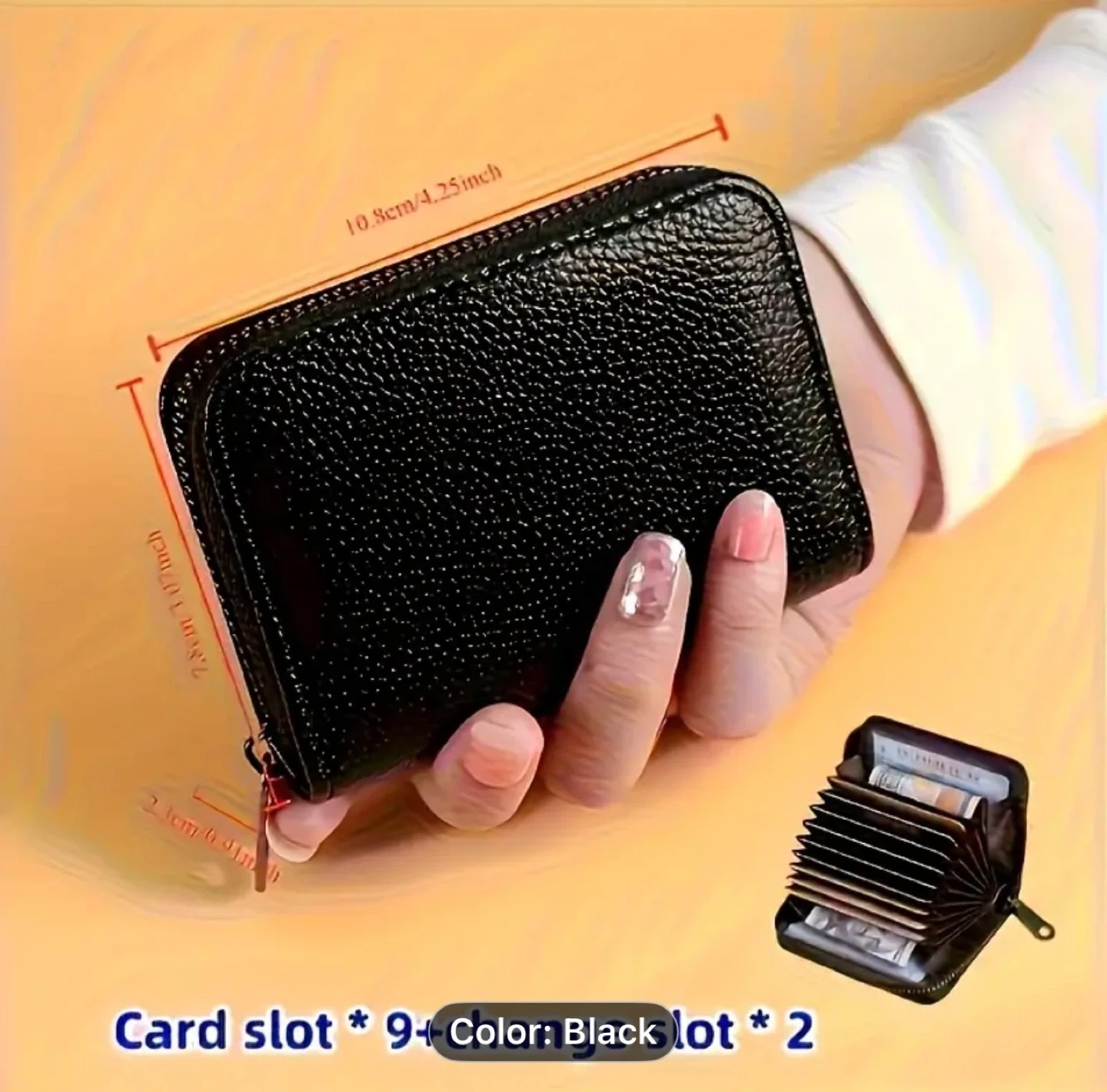 Available in Four Seasons, This Ultra-Thin Black Faux Leather Wallet Features RFID Blocking, 11 Card Slots, And a Zip Closure - a High-Capacity Anti-Magnetic Card Holder Suitable for Both Men And Women, Designed with Texture, Style