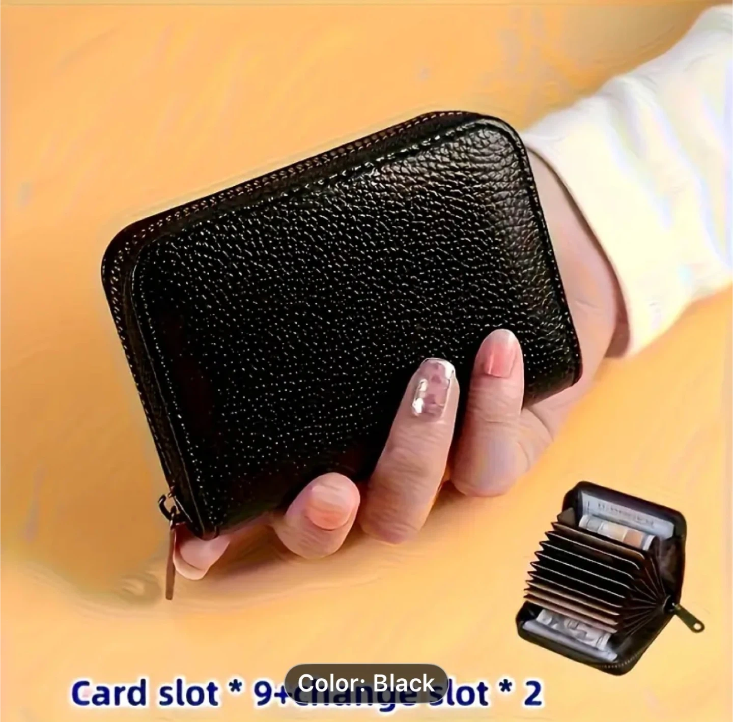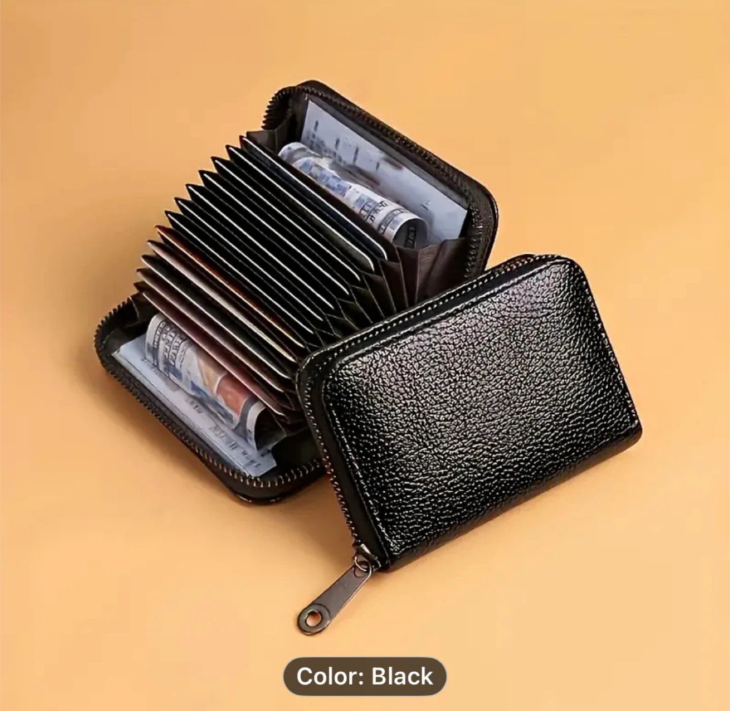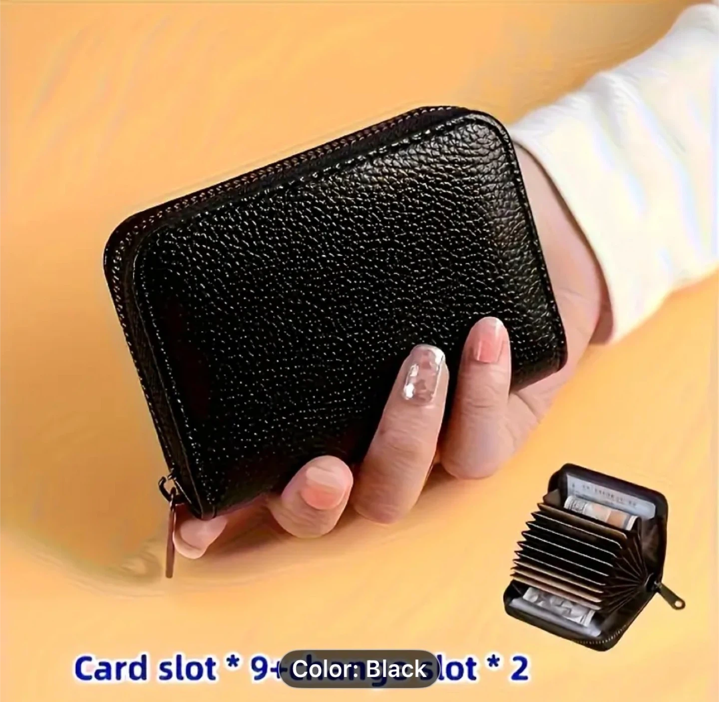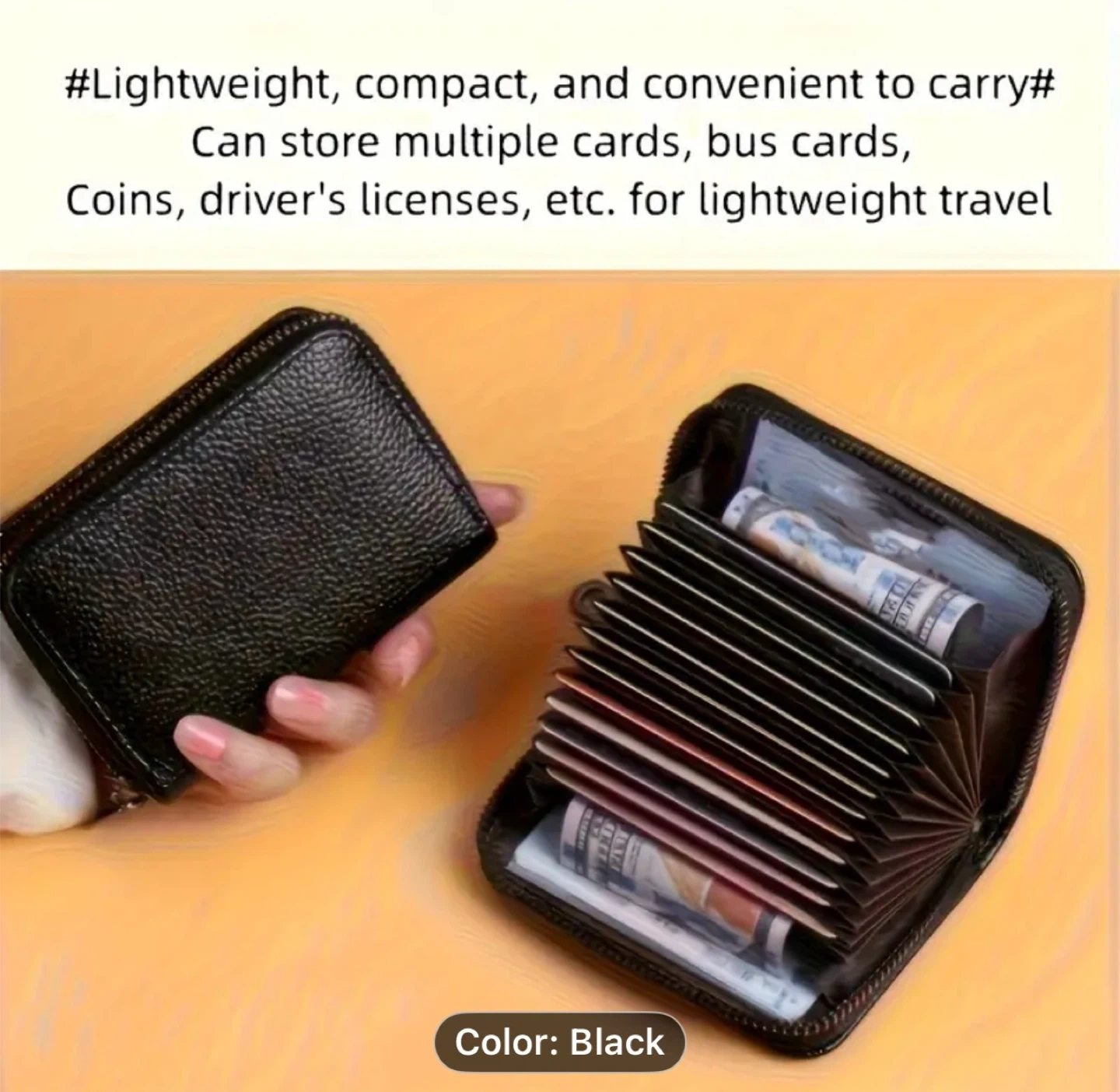 Available in Four Seasons, This Ultra-Thin Black Faux Leather Wallet Features RFID Blocking, 11 Card Slots, And a Zip Closure - a High-Capacity Anti-Magnetic Card Holder Suitable for Both Men And Women, Designed with Texture, Style