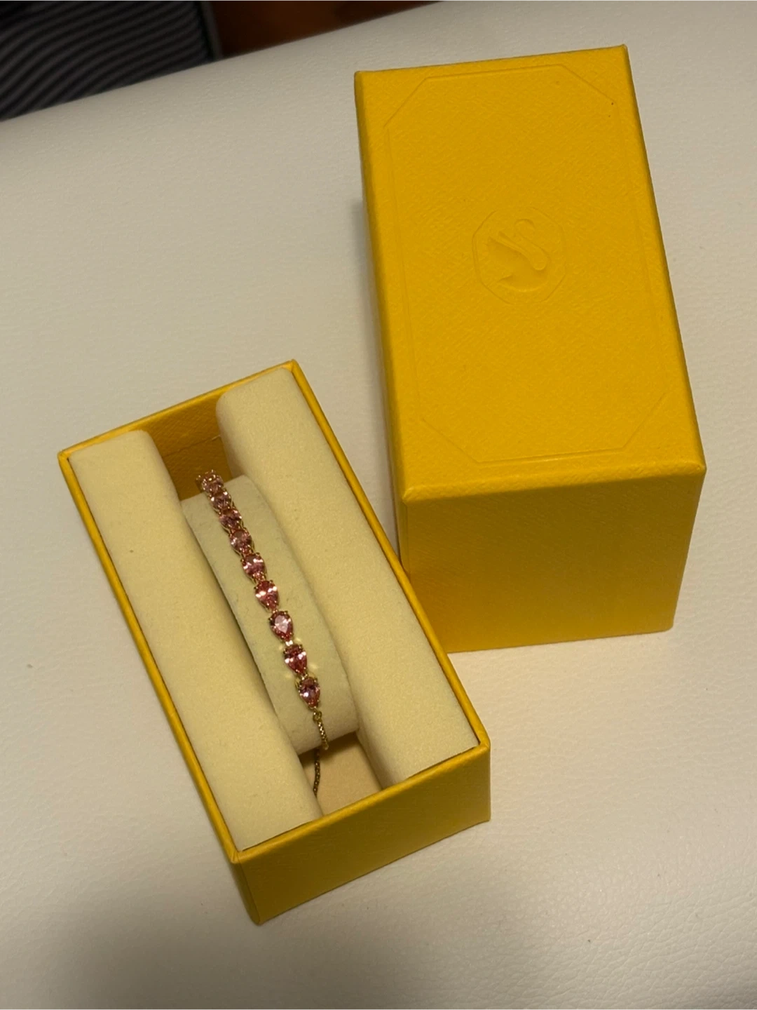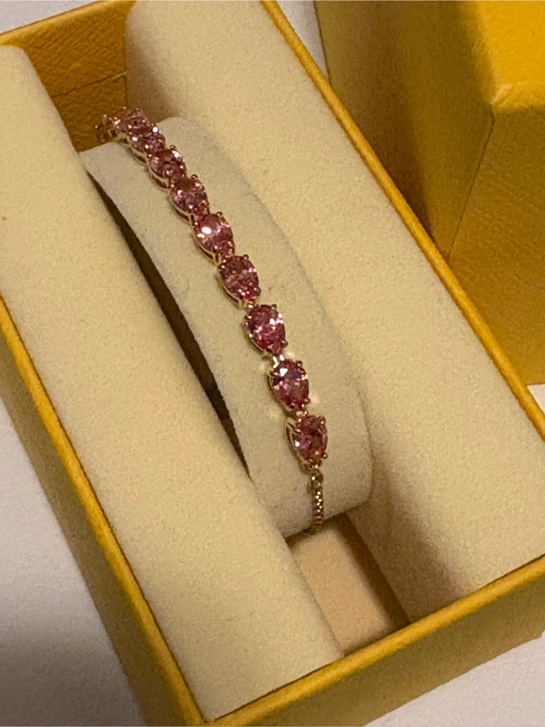 Selling a beautiful Swarovski Tennis Bracelet in pink with a gold-tone finish! It comes with the original box, perfect for gifting or treating yourself. This bracelet is in excellent condition as it is brand new as it was a gift.