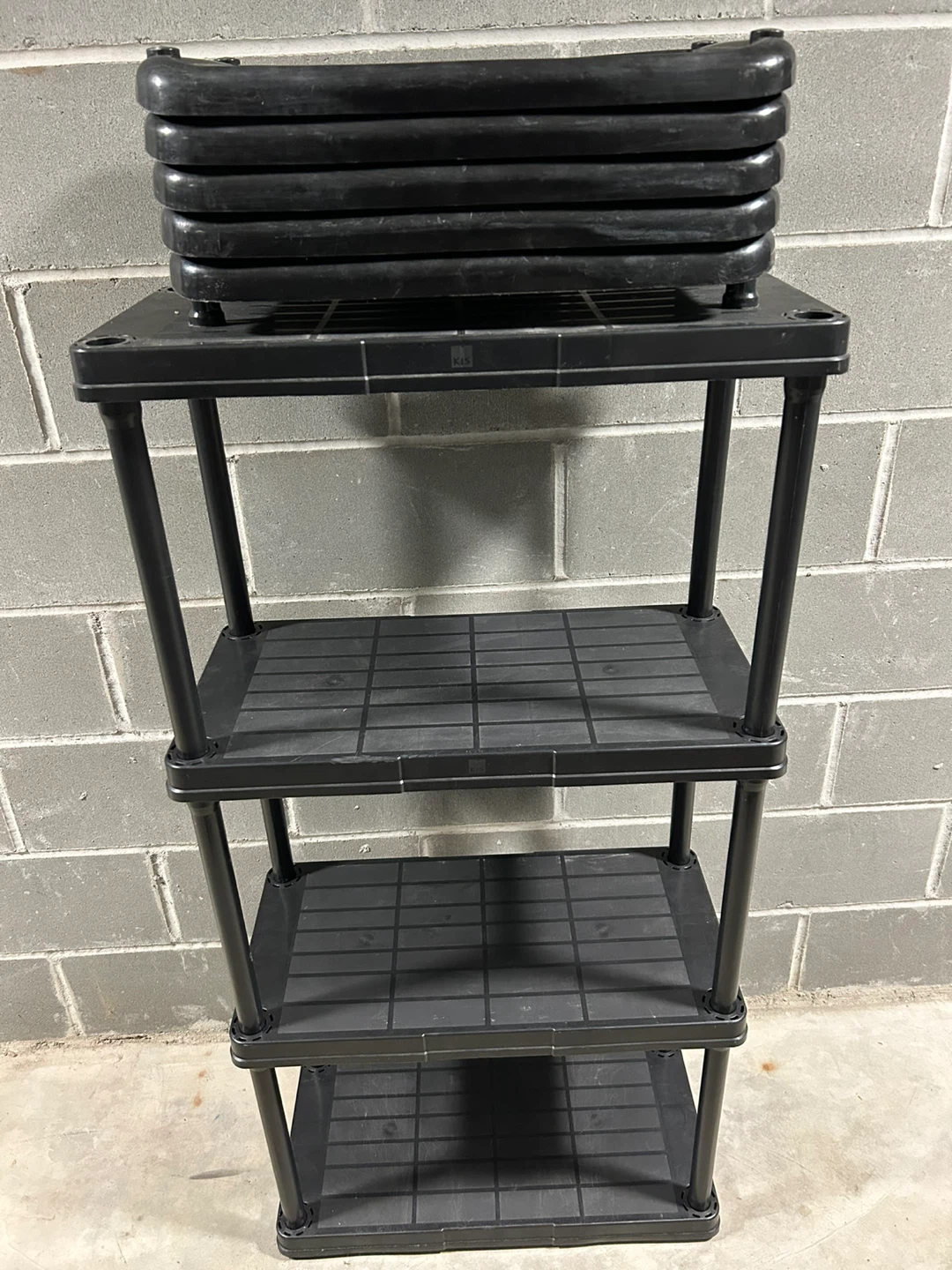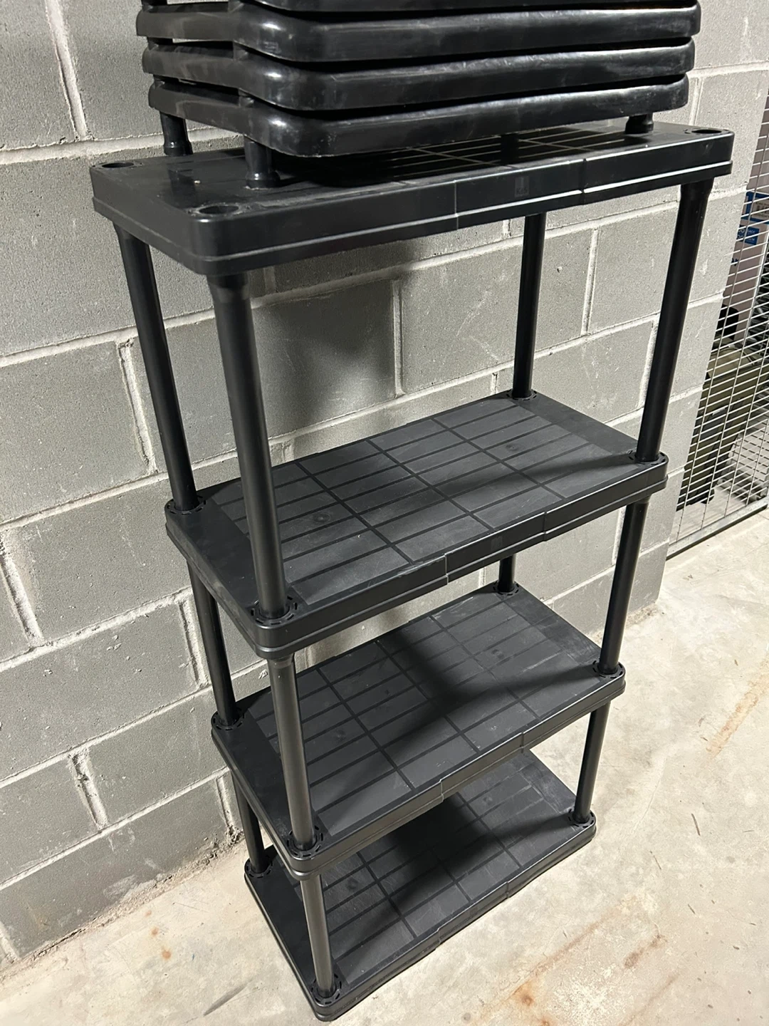 I'm selling a 4-tier black plastic shelf. It's in great shape and ready to help you organize your space. Perfect for storage in a garage, basement, or closet. Plus shoe rack as give away.