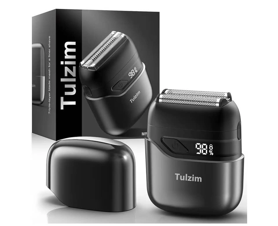 Afeitadora eléctrica de aluminio para hombres: maquinilla de afeitar eléctrica portátil para barba/cara - Pantalla LED de 3 hojas flotantes USB-C recargable rápida - IPX7 impermeable.