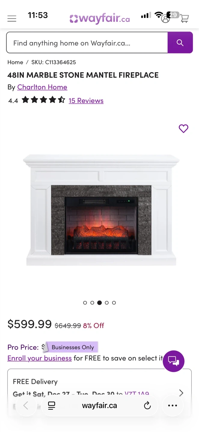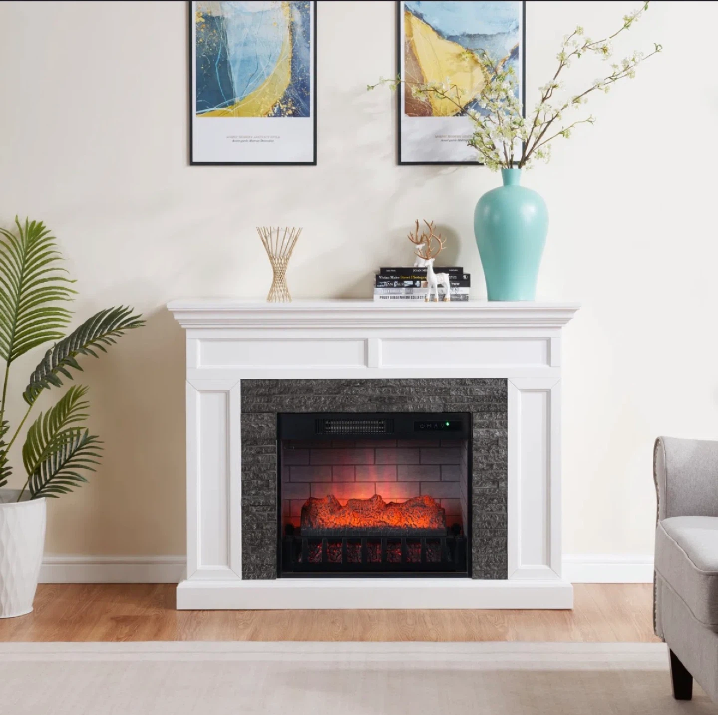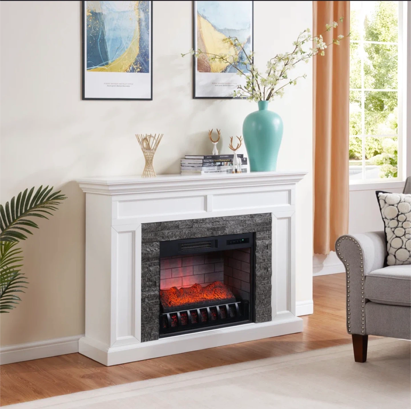 Selling a brand new 48” Marble Stone Mantel Electric Fireplace by Charlton Home (Wayfair).