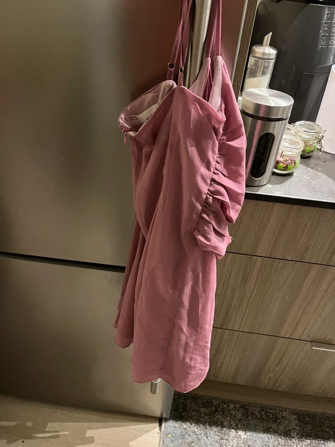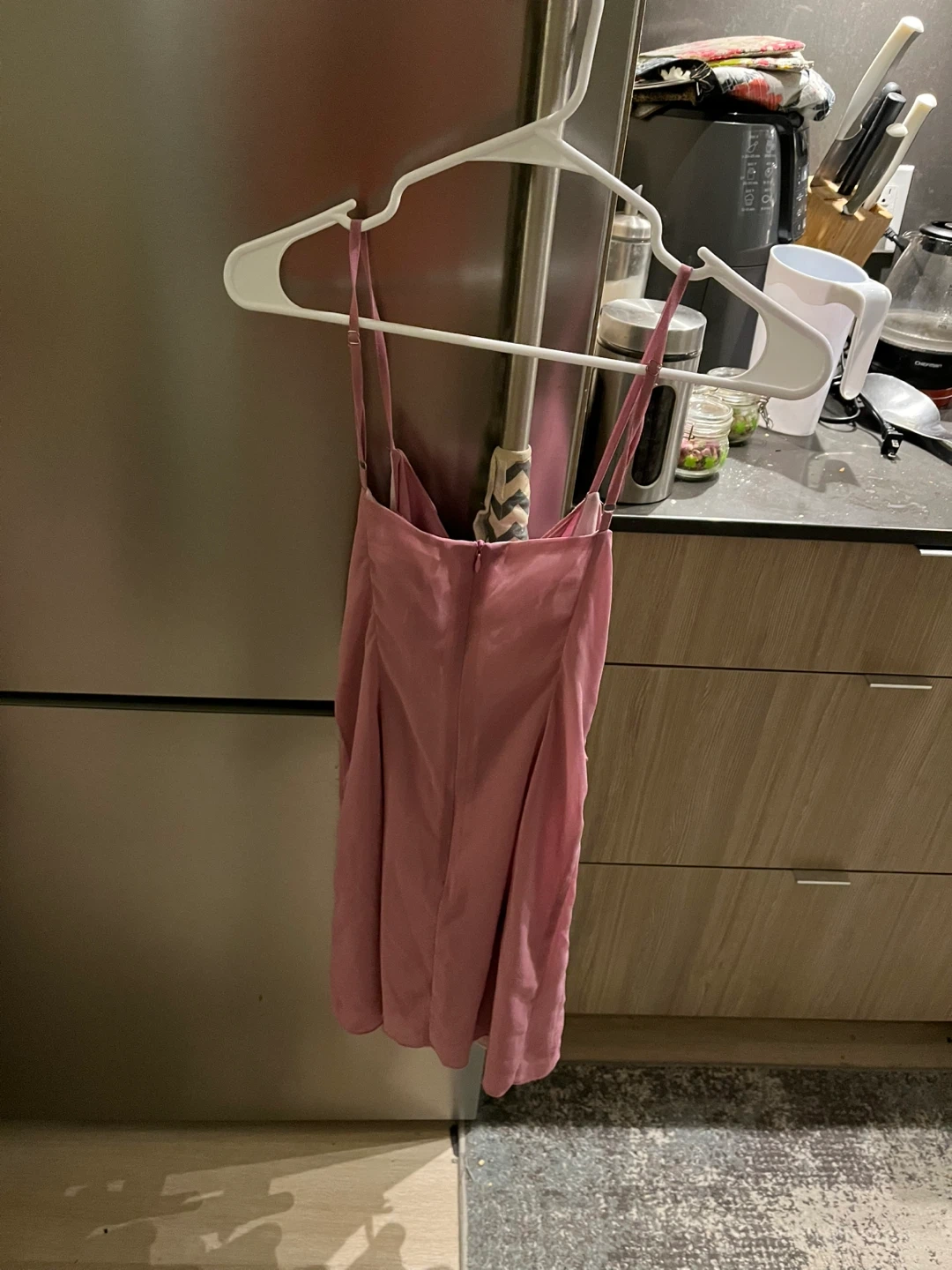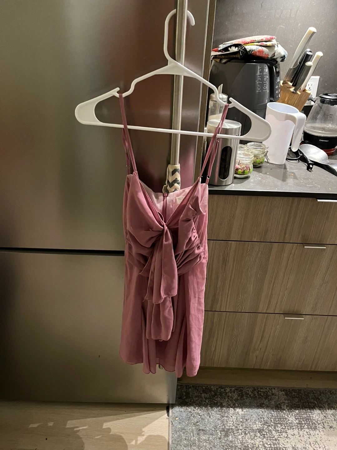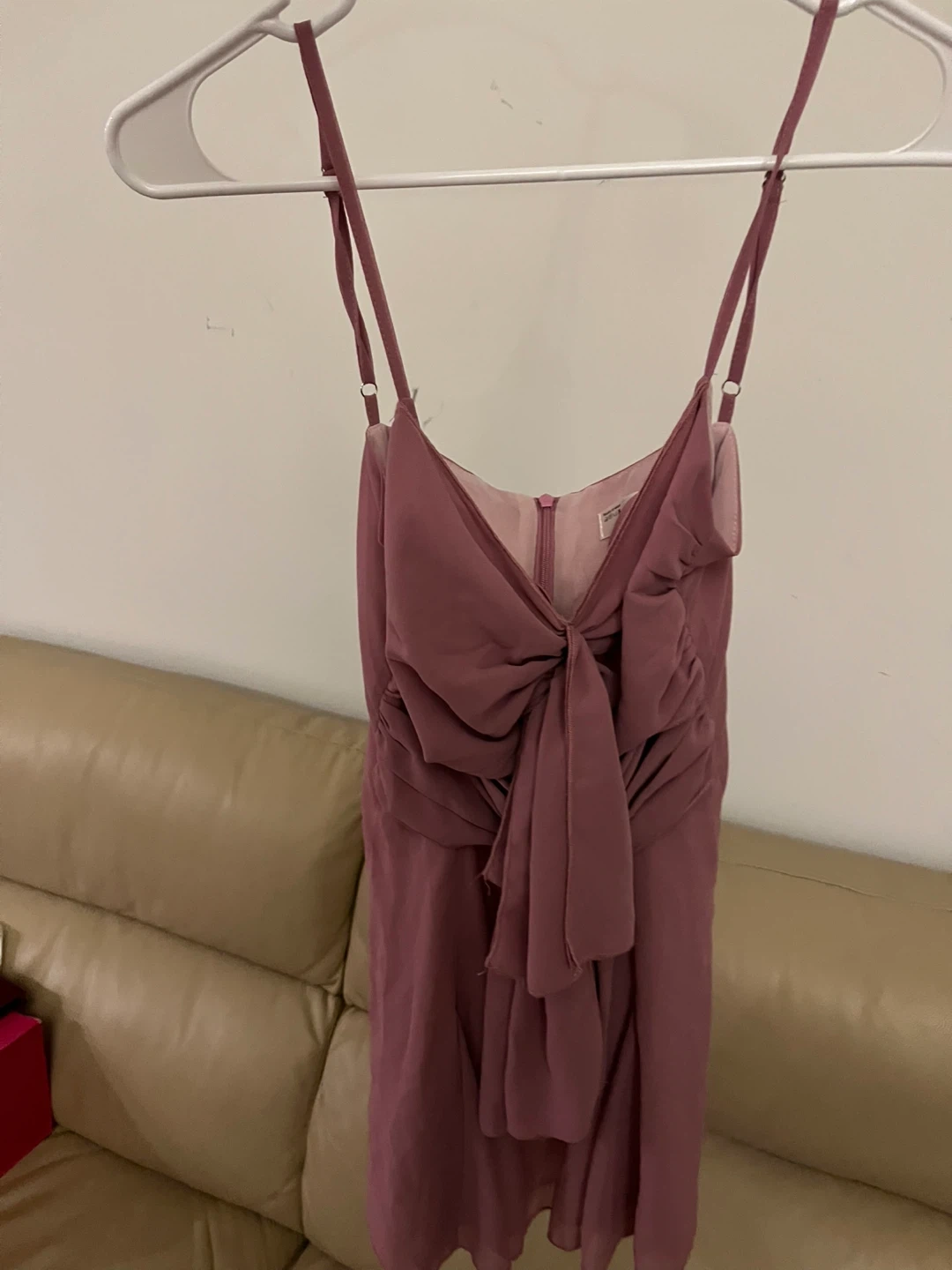 Selling a cute mauve mini dress! It features a tie front and is in great condition. Perfect for a night out or a special occasion