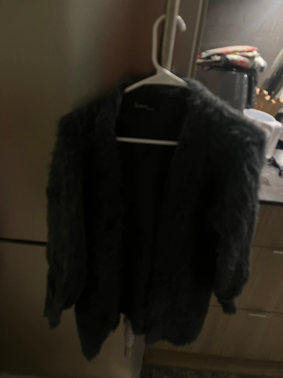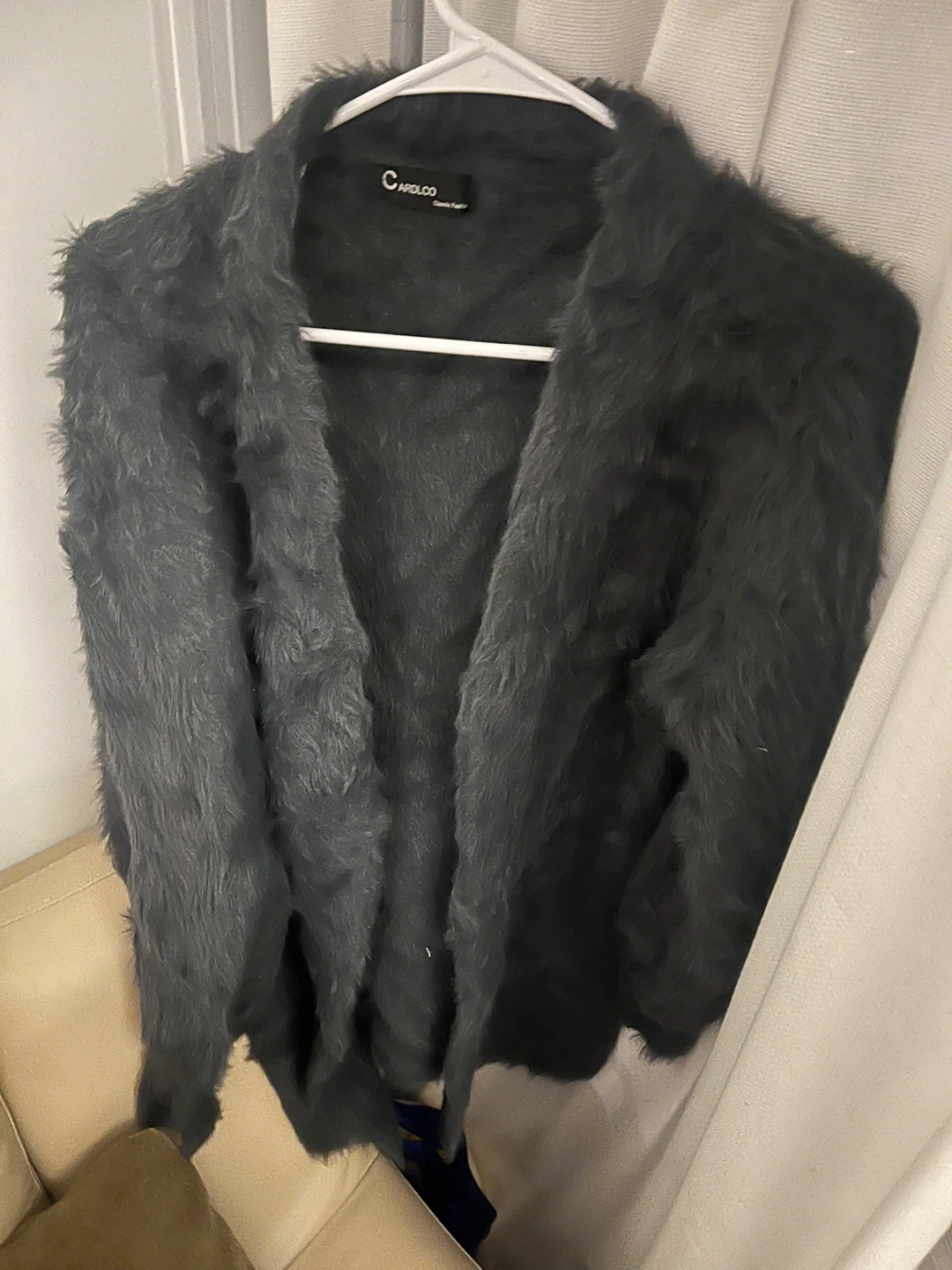 Selling a cozy Apeico fuzzy cardigan in a lovely grey colour. It's a size medium and in great condition! Perfect for layering or just lounging around the house