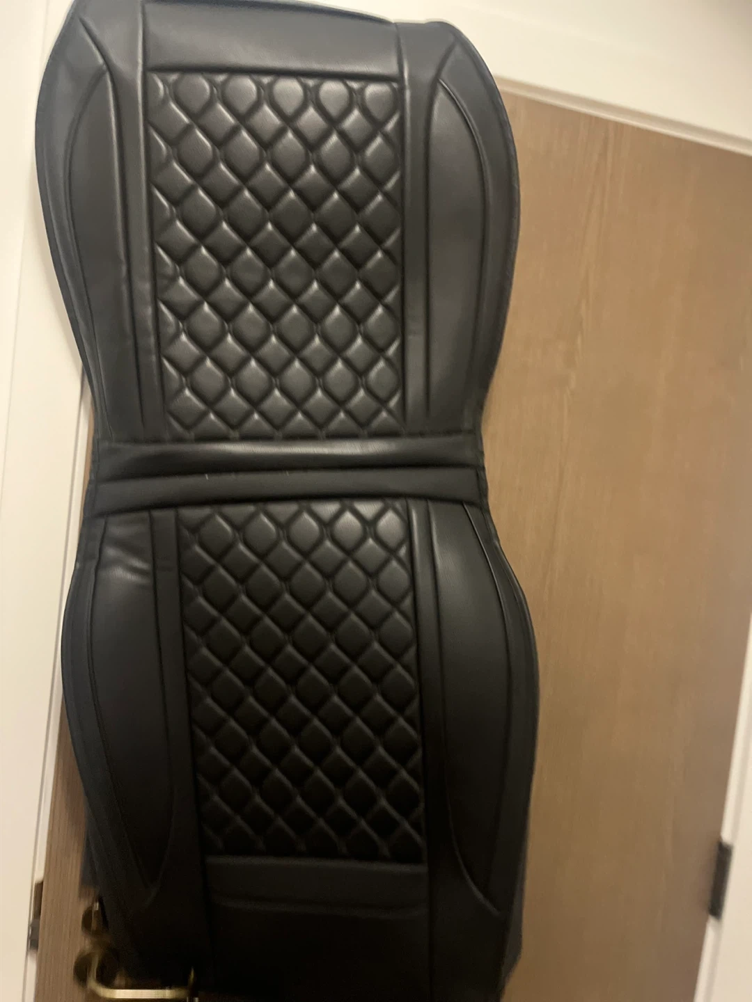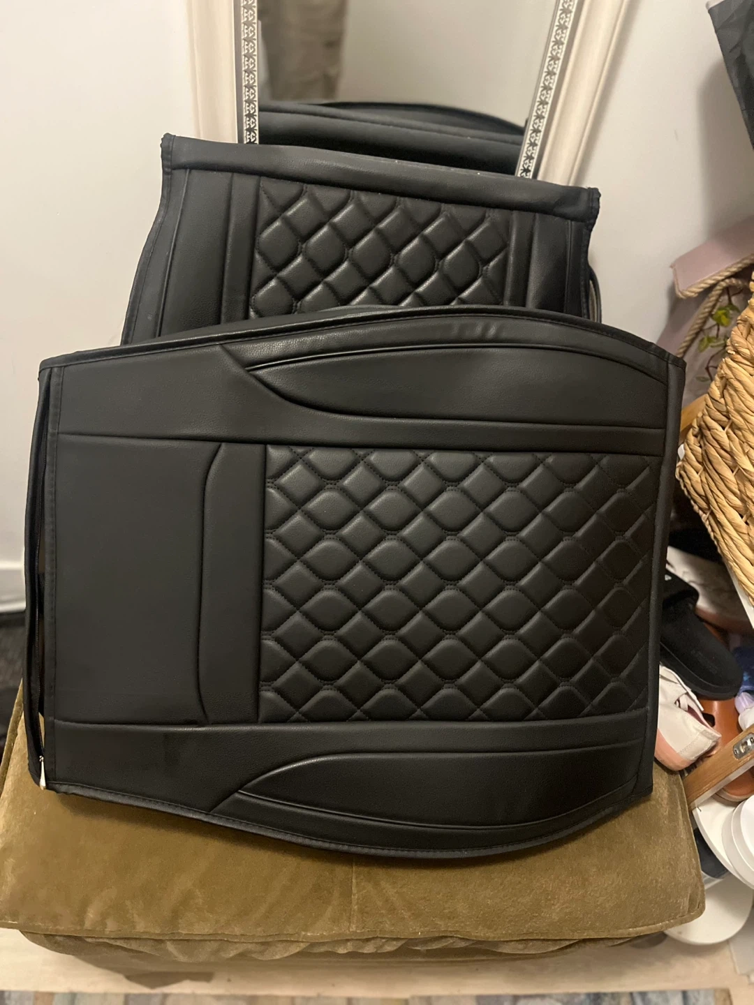 Selling a full set of black leather car seat covers. They feature a stylish quilted design and are in great condition! Perfect for upgrading your car's interior.