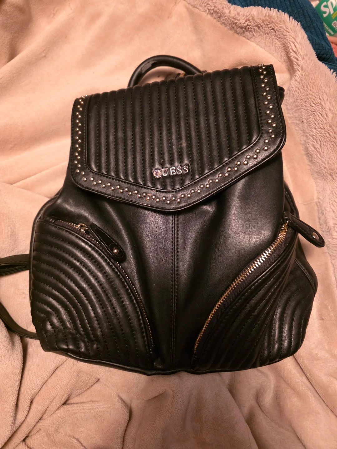 Guess black backpack. It has some wear and tear on the handle, but otherwise in good condition. It's a stylish and functional bag! Super clean and gorgeous bag.