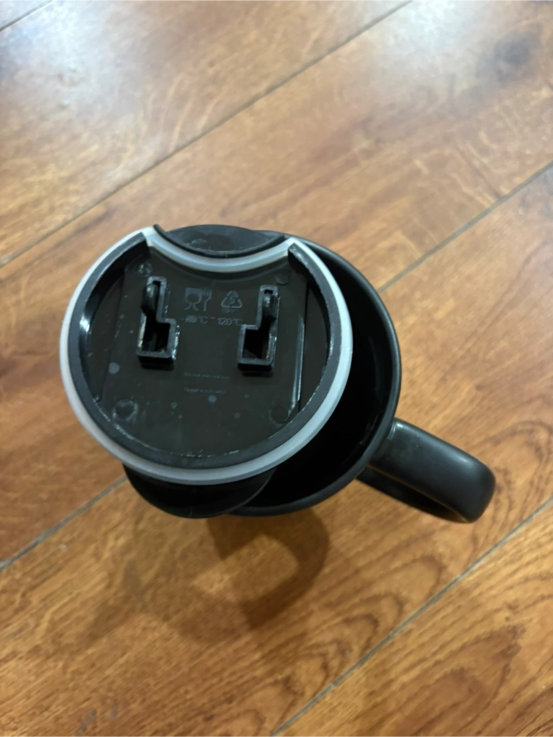 Selling a black travel mug with a lid. It's in good condition and ready for your daily commute or weekend adventures