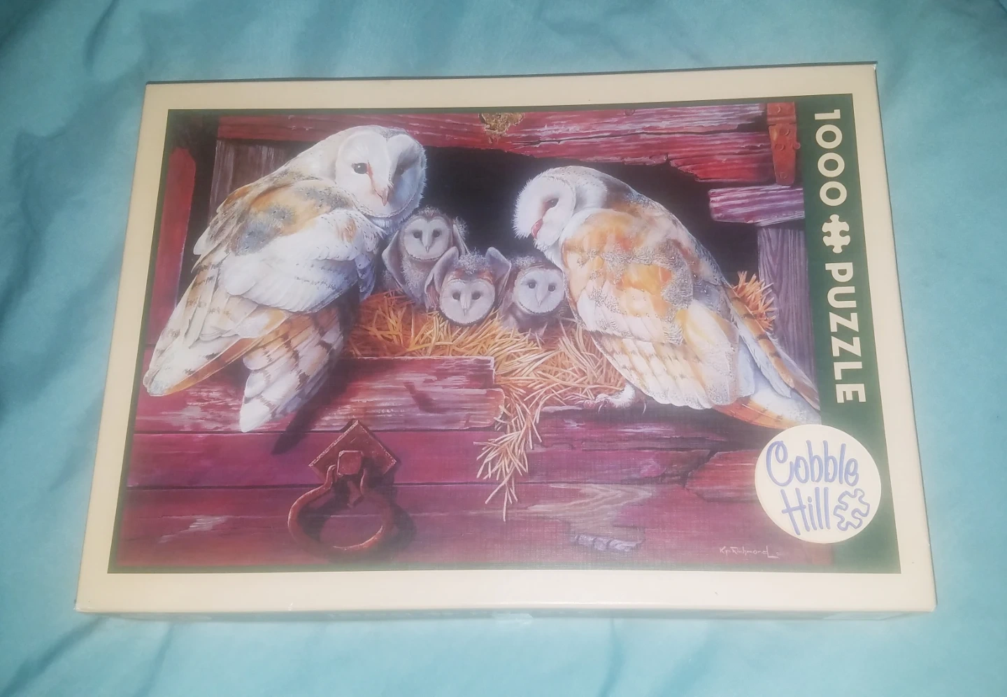 Vintage Cobble Hill 1000 Piece Jigsaw Puzzle Barn Owls