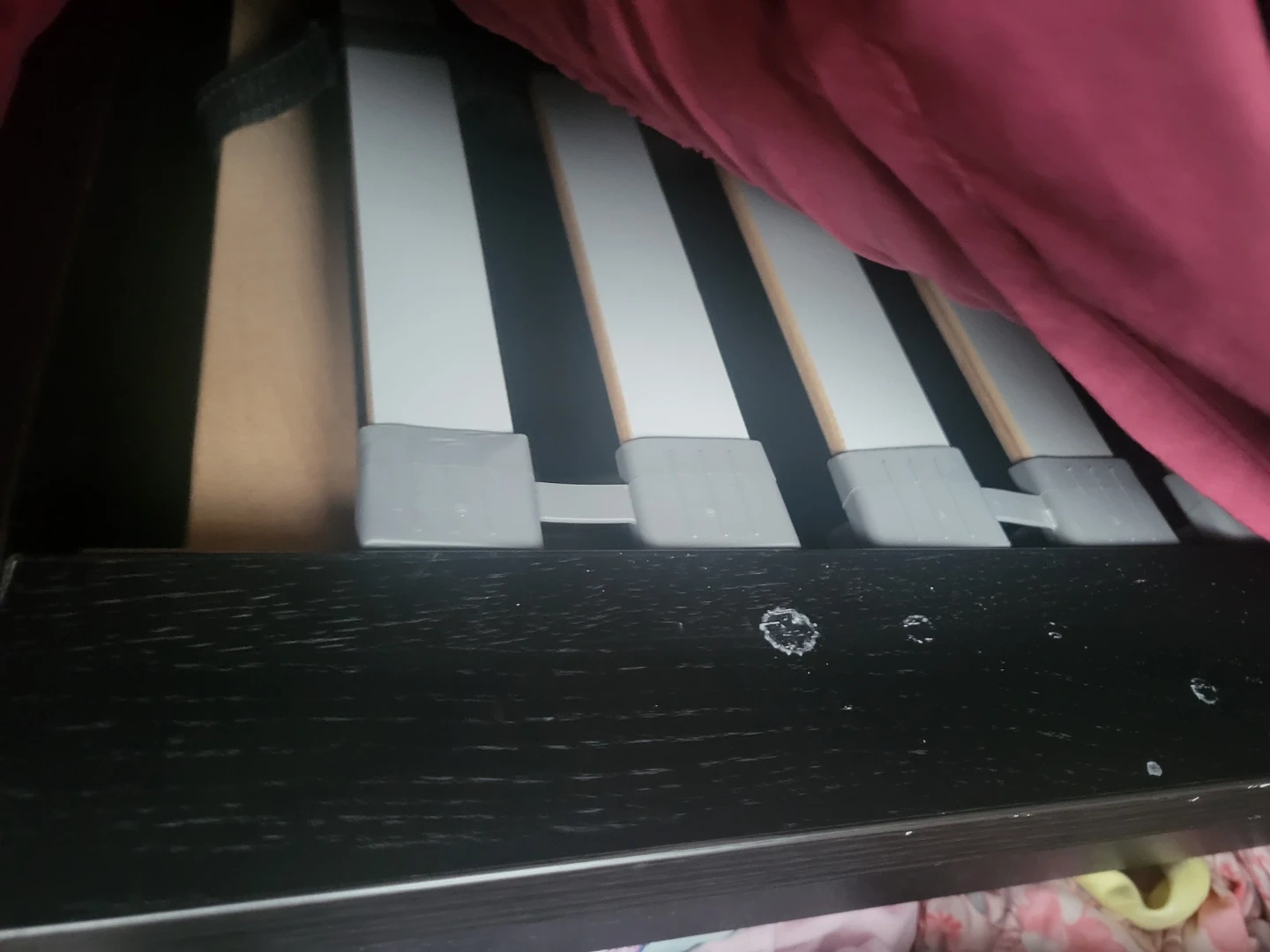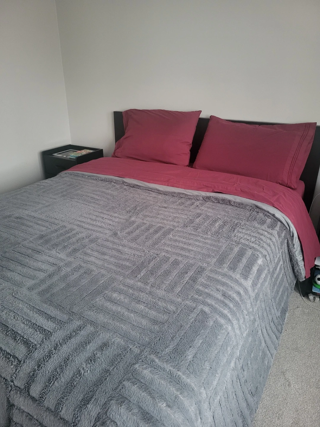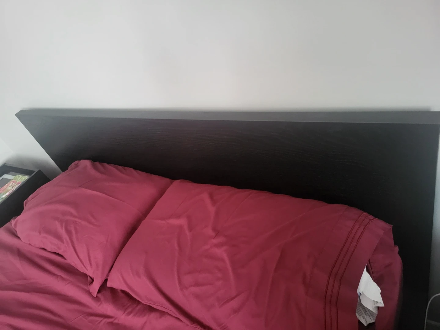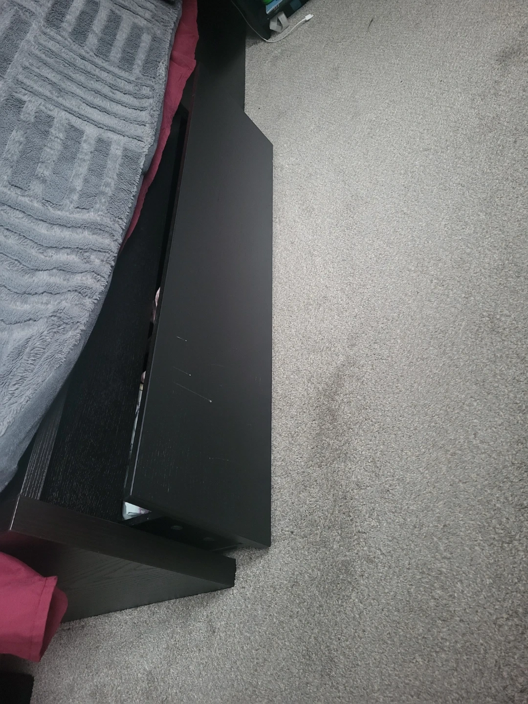 Selling a black IKEA bed frame. It's in good condition and ready for a new home. It features a sleek design and sturdy construction. Comes with 4 drawers that fit under the bed for extra storage.