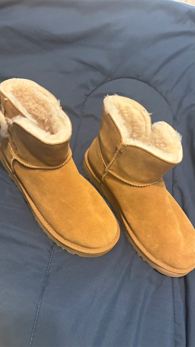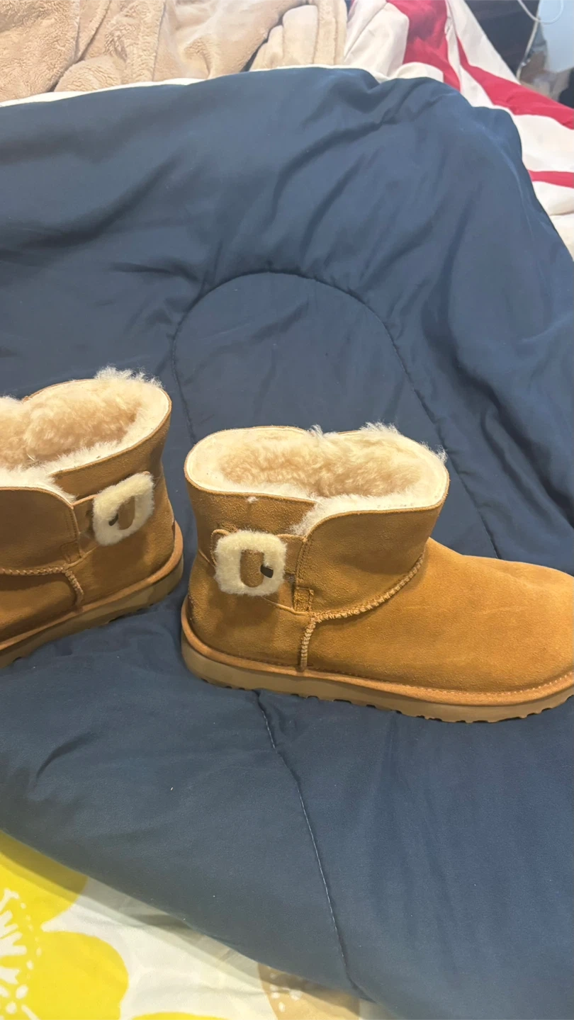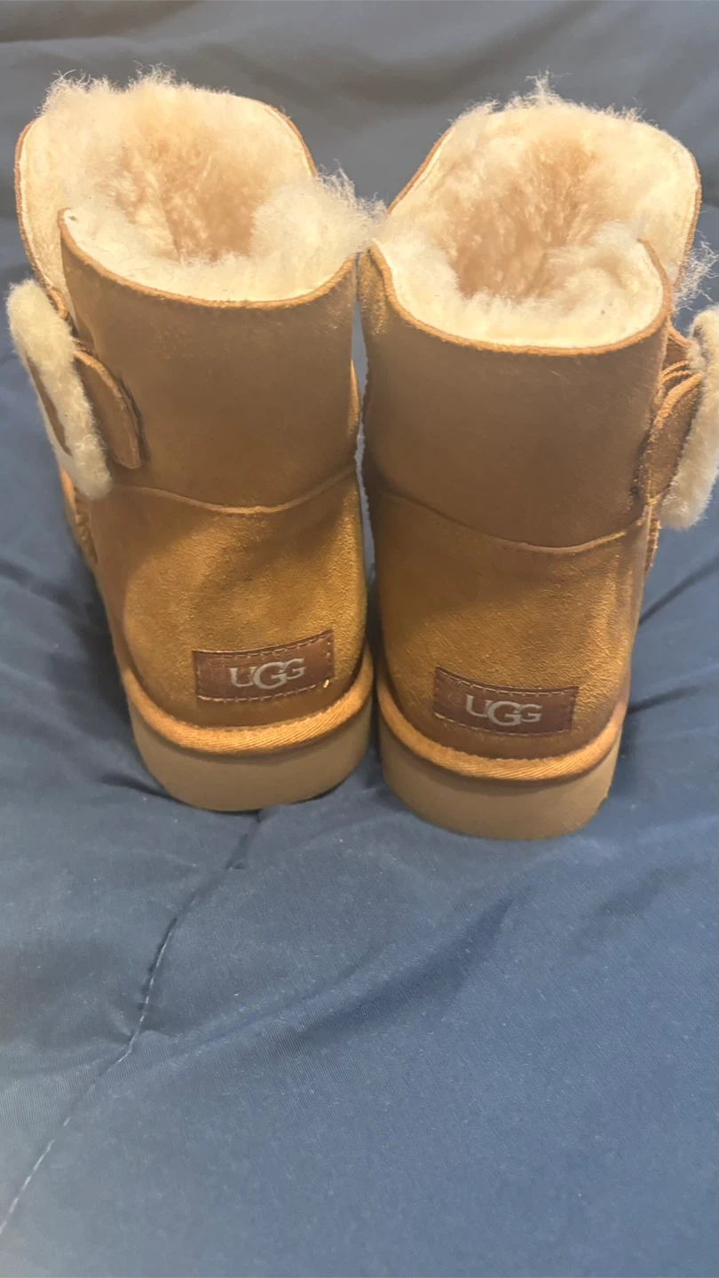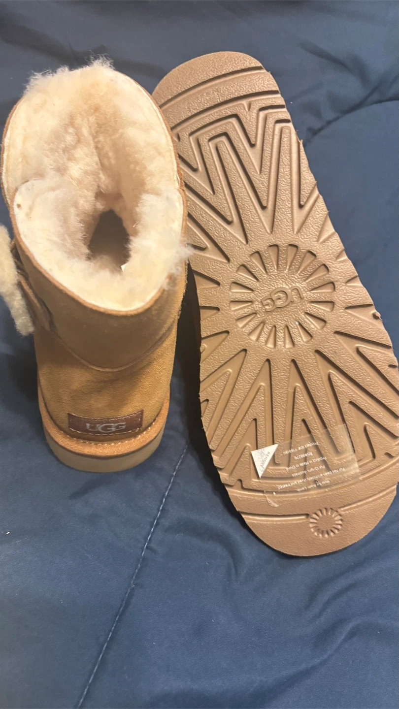 Selling a pair of UGG Kids' Bixbee boots in a cute tan color! They're in great condition and perfect for keeping little feet warm and cozy. These are a size 9. Please reach out if you have any questions!