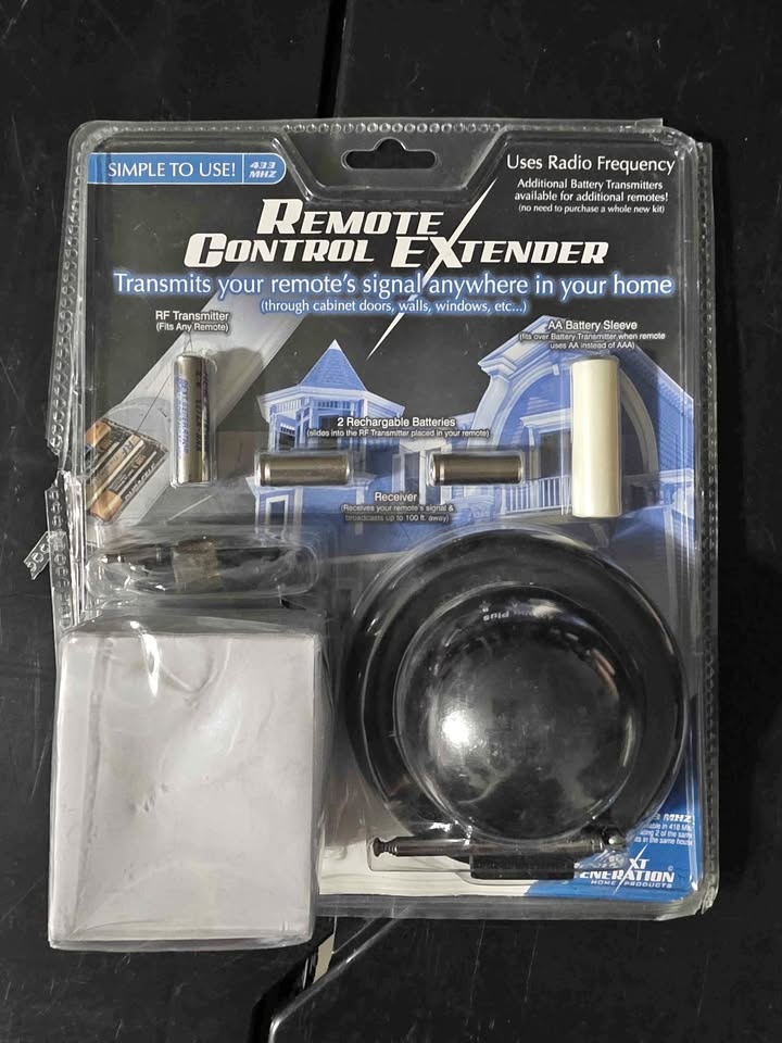 Brand new in box - lets you control AV equipment like TVs, cable boxes, DVD players, or sound systems hidden in cabinets or another room by relaying the remote's infrared (IR) signals, overcoming line-of-sight issues and allowing hidden setups for a cleaner look or whole-home audio/video distribution.