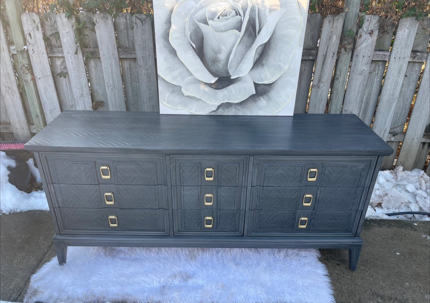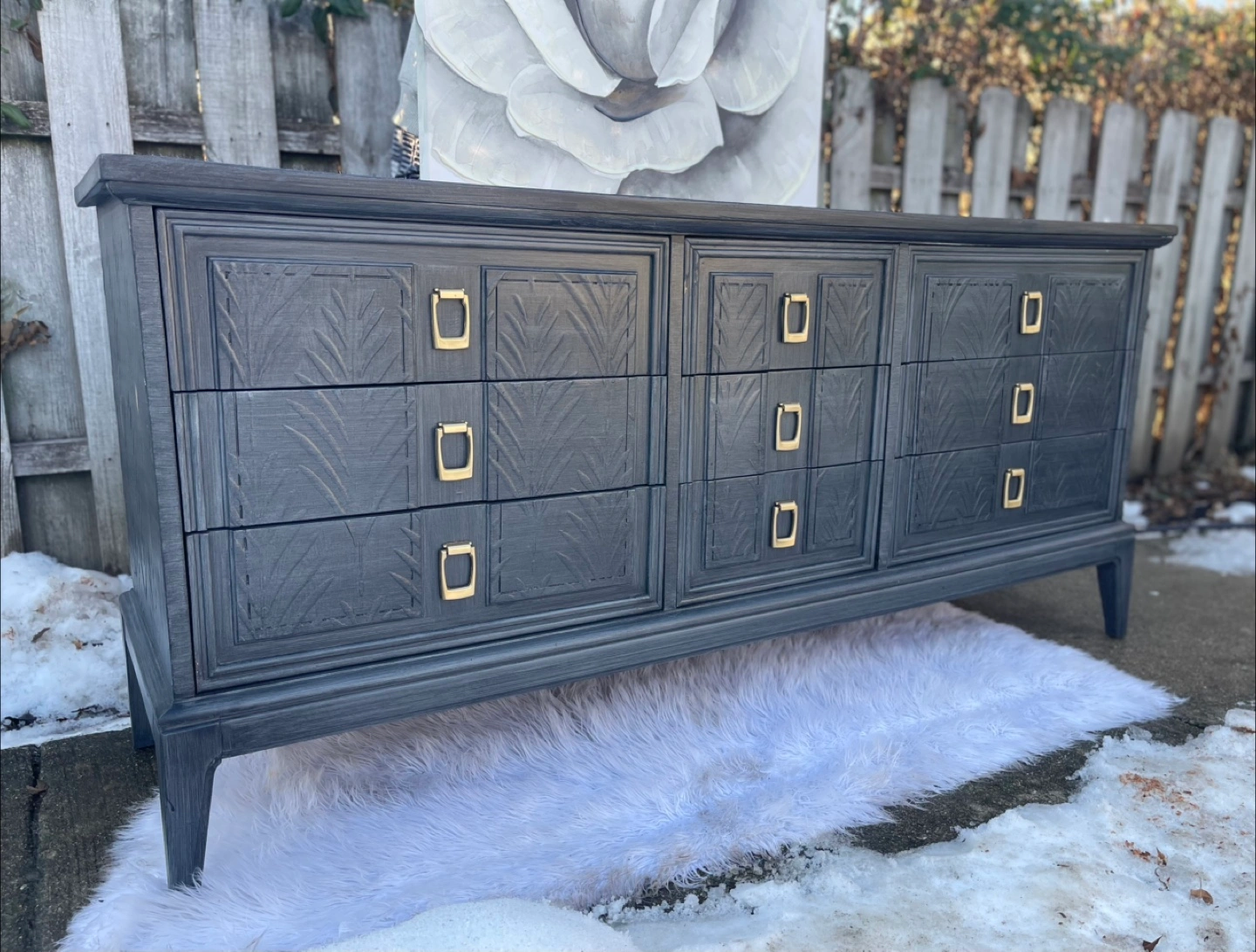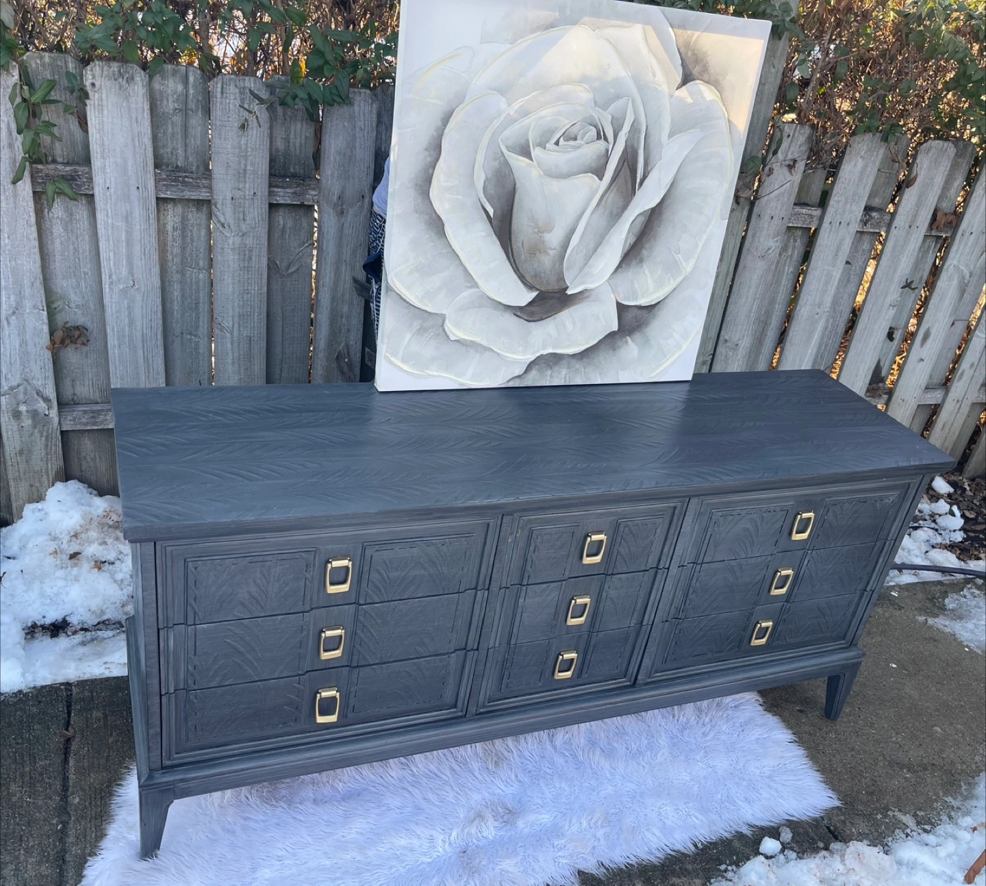 DIXIE MCM 9 drawers dresser/TV Stand redone in brushed gray