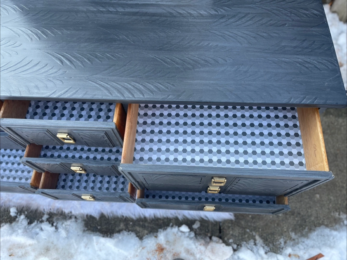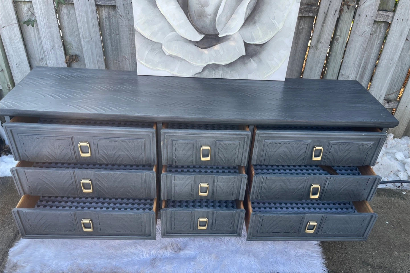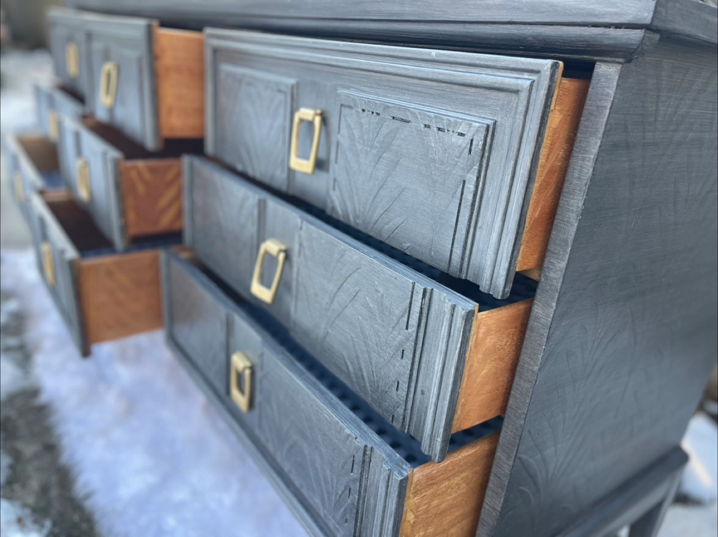 DIXIE MCM 9 drawers dresser/TV Stand redone in brushed gray