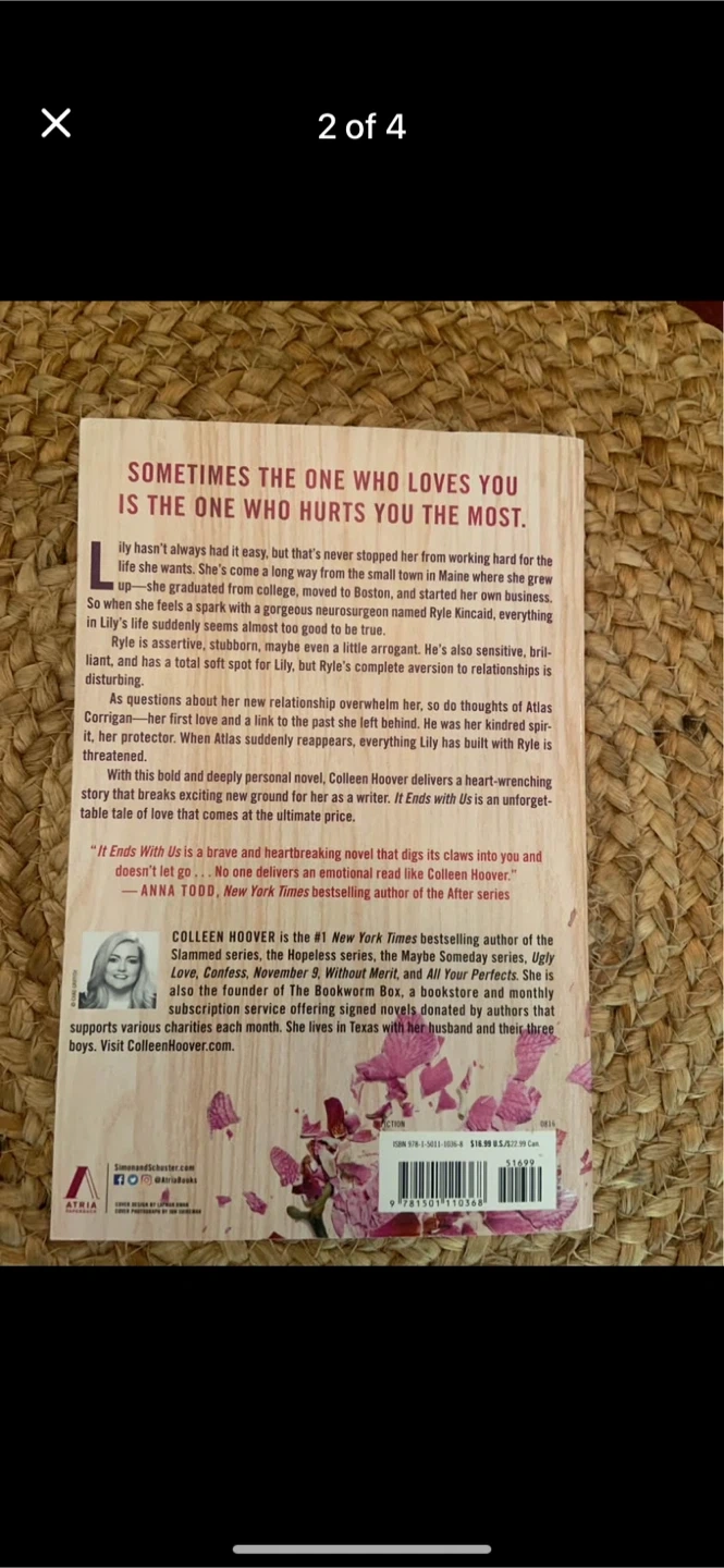 Selling a paperback copy of "It Ends With Us" by Colleen Hoover! It's a novel that's part of the Atria Paperback series. Perfect for anyone who enjoys a heartfelt and engaging read