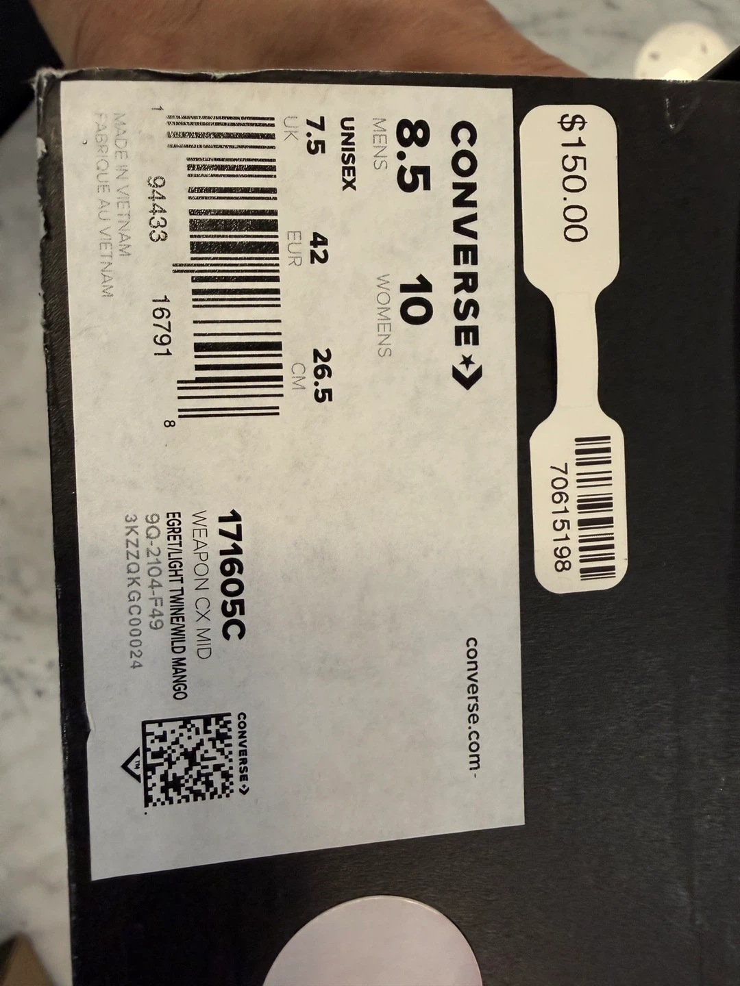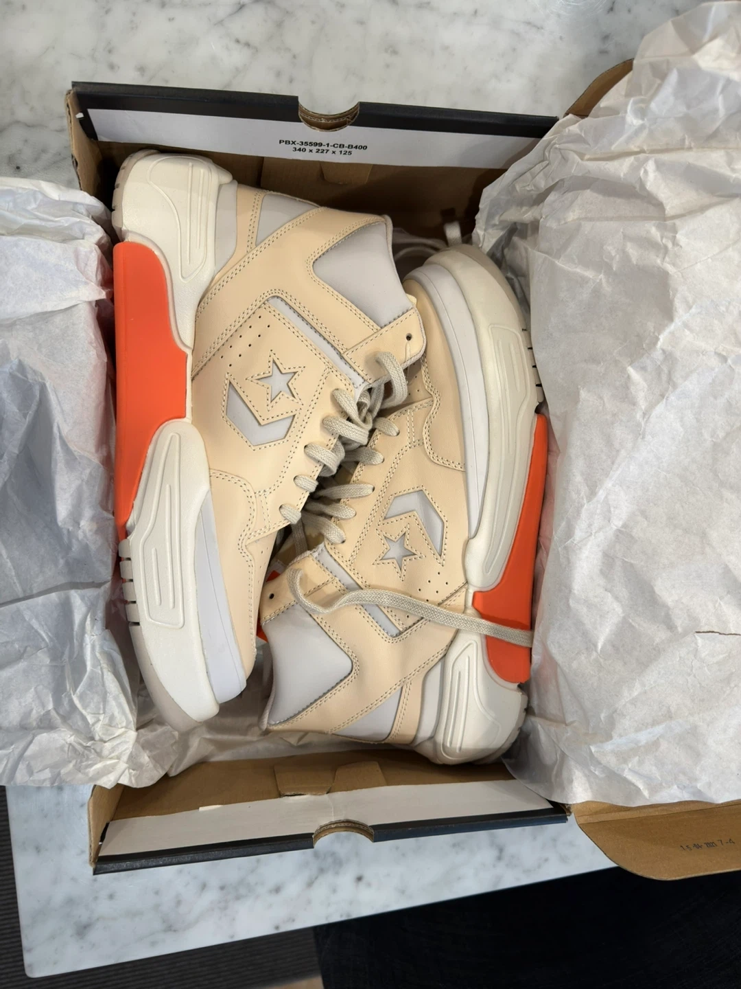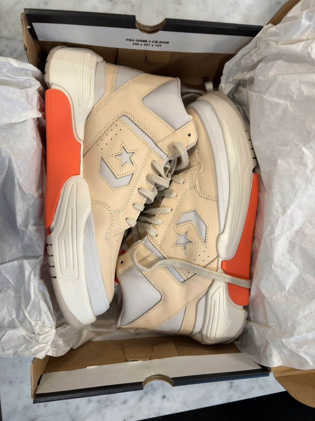 Selling a pair of Converse Weapon CX Mid sneakers (unisex) in size US 8.5 women/ 10 men. The colourway is Egret/Light Twine/Wild Mango. These come with the original box. Originally bought for $150!