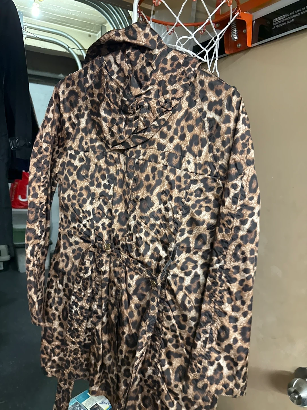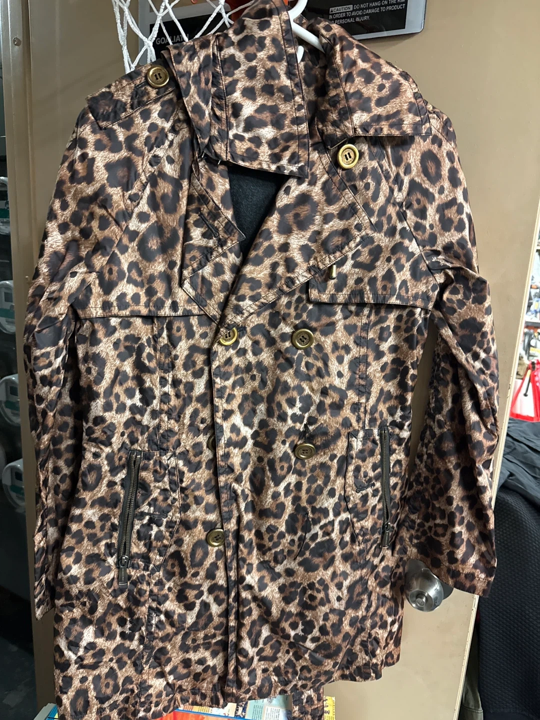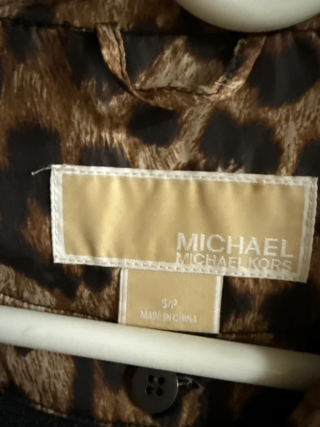 Selling a stylish Michael Michael Kors coat in a striking leopard print! It's a size small and features a button-up front with a hood. Perfect for adding a touch of flair to your wardrobe.
