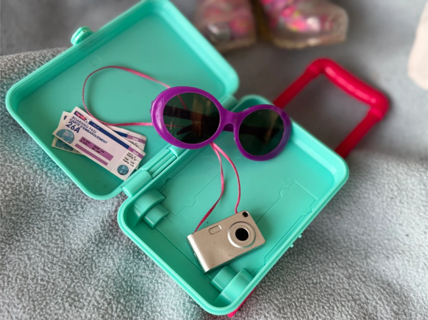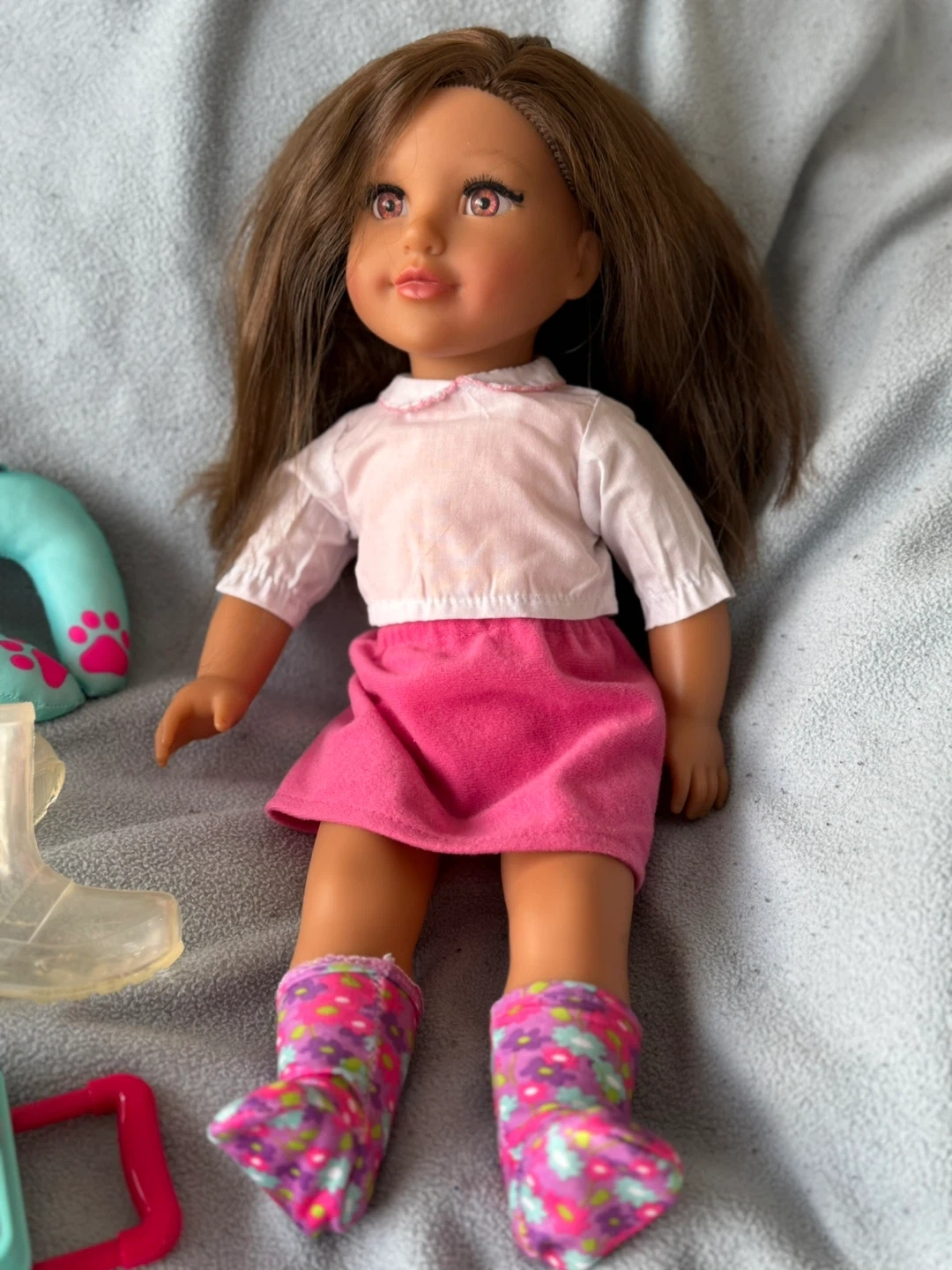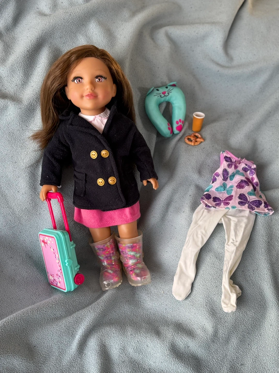 Jet Set Jessica comes with a suitcase, neck roll, two outfits! But wait, that’s not all. She also has a pretzel, and coffee to go along with her camera. Open to offers!