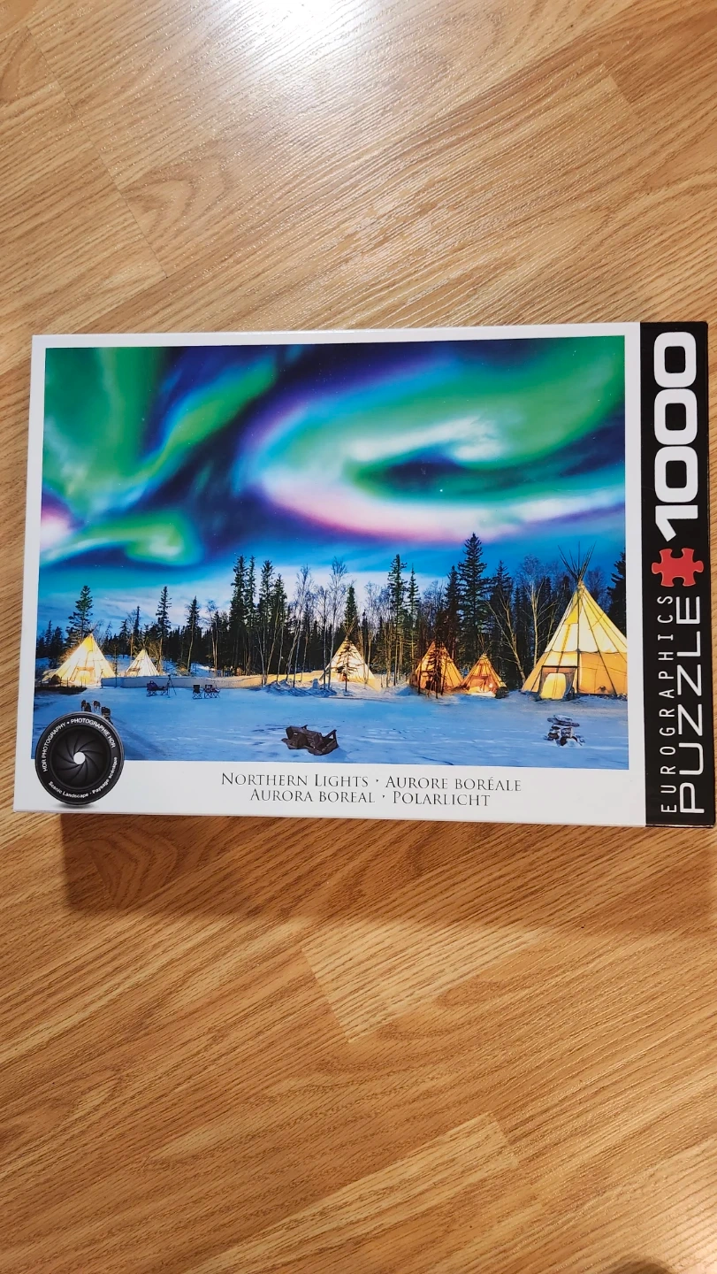Eurographics puzzle featuring a beautiful image of the Northern Lights, also known as Aurore Boreale, Aurora Boreal, and Polarlicht. It's a 1000-piece puzzle for hours of fun!