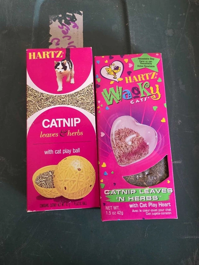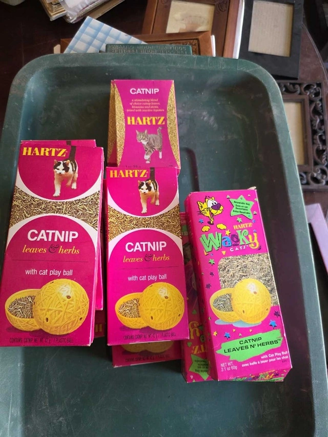 I have 12 packs of cat nip; most of them come with a ball to fill with the catnip, and 2 are just the cat nip. If you take them all, I will give them at $18 for everything, or $2 each. If you wanna take a few, let me know!