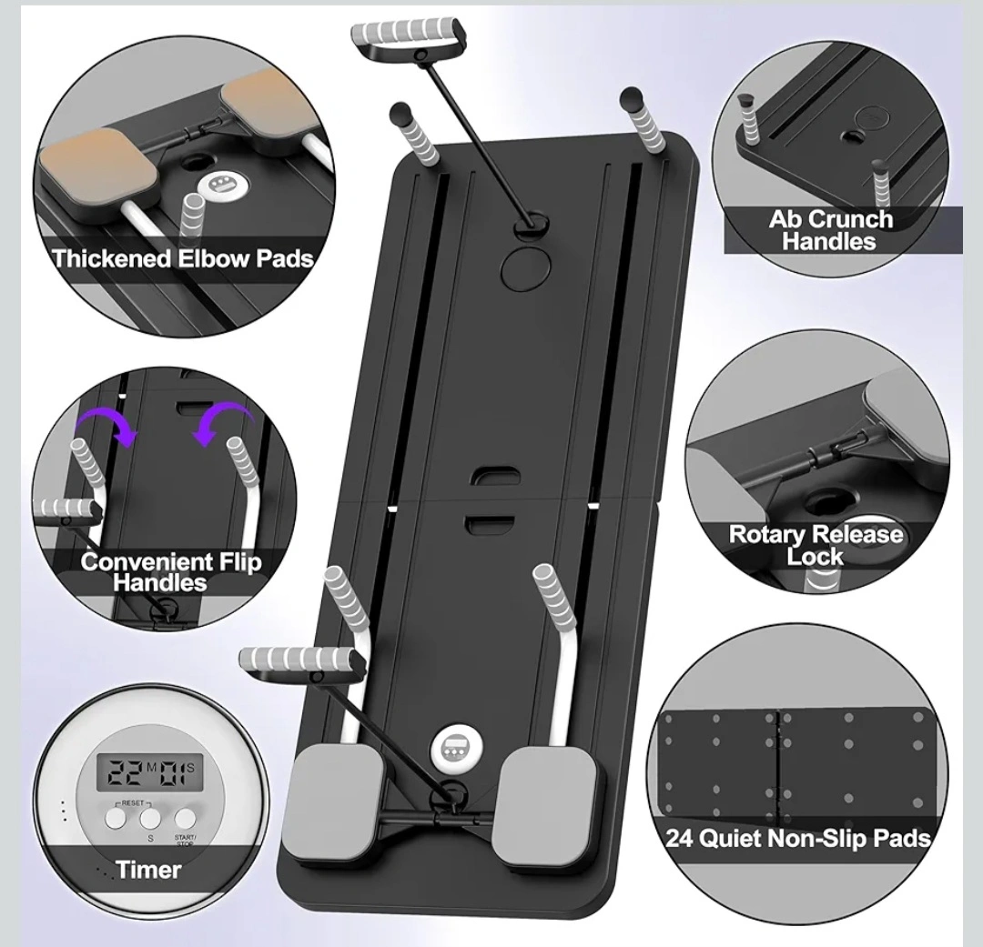 This abdominal trainer is designed to help you work your core! It features thickened elbow pads, convenient flip handles, and ab crunch handles. It also has a rotary release lock and 24 quiet non-slip pads. It also includes a timer to help you keep track of your workout