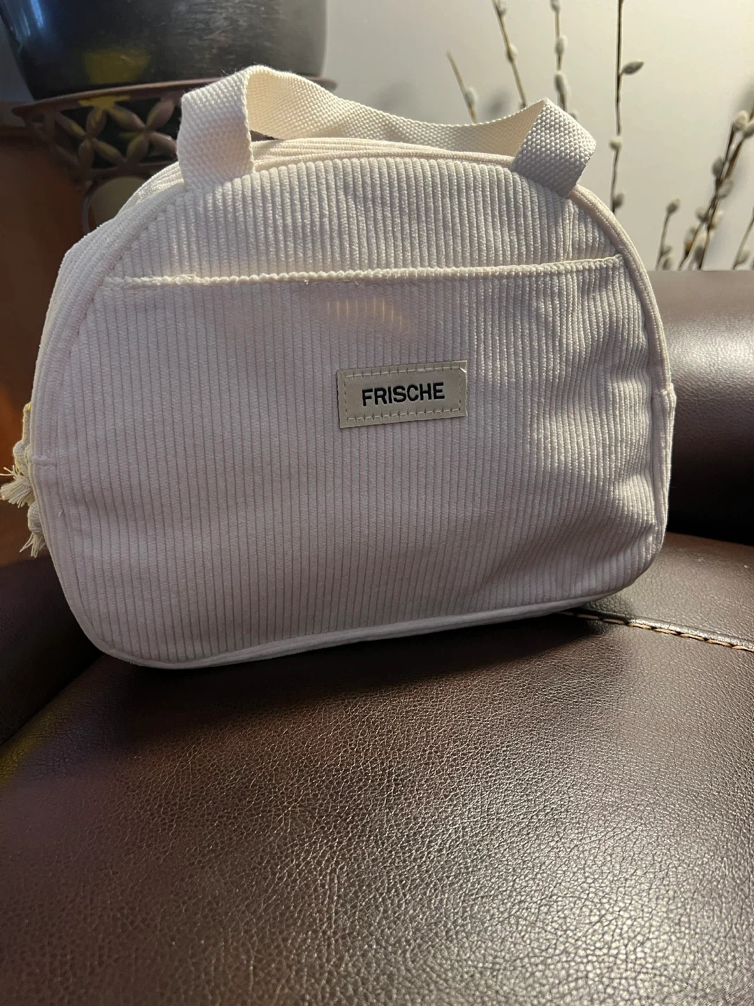 Keep your lunch cool and stylish with this Frische insulated lunch bag! It's a lovely beige colour and perfect for taking your meals on the go. The insulated lining helps to maintain the temperature of your food, whether it's a cold salad or a warm leftover. Never been used.