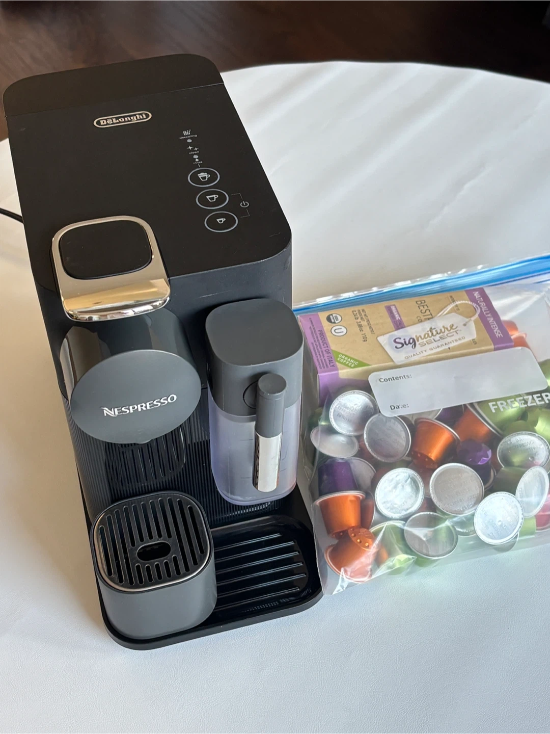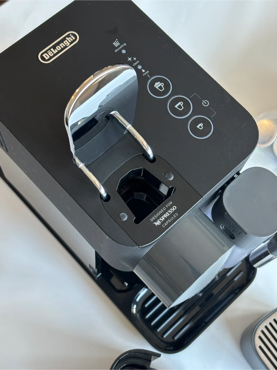 Selling a DeLonghi Lattissima One Nespresso machine! It's in great shape and ready to make delicious coffee. It comes with various components for your convenience. Enjoy the perfect cup every time!