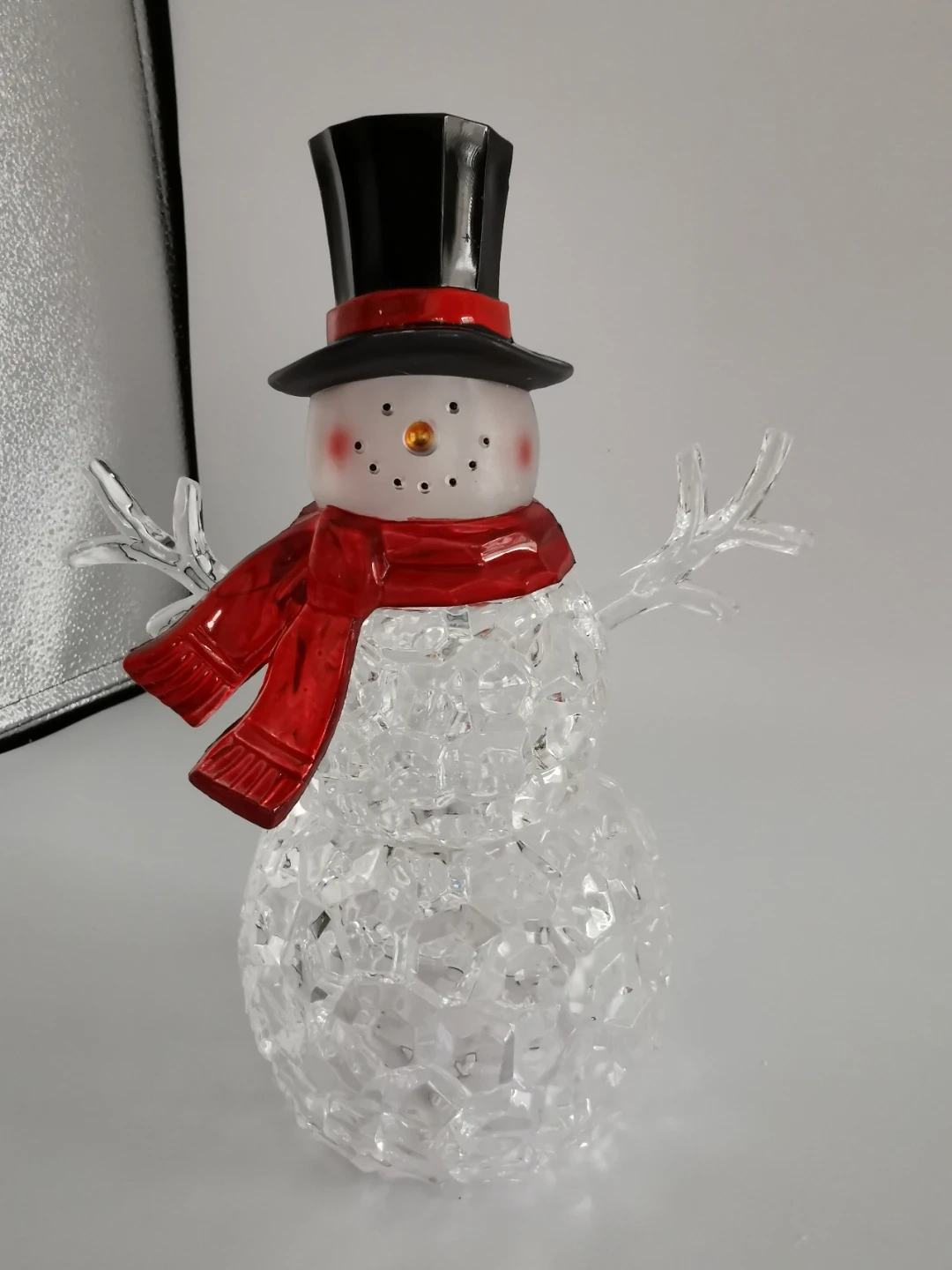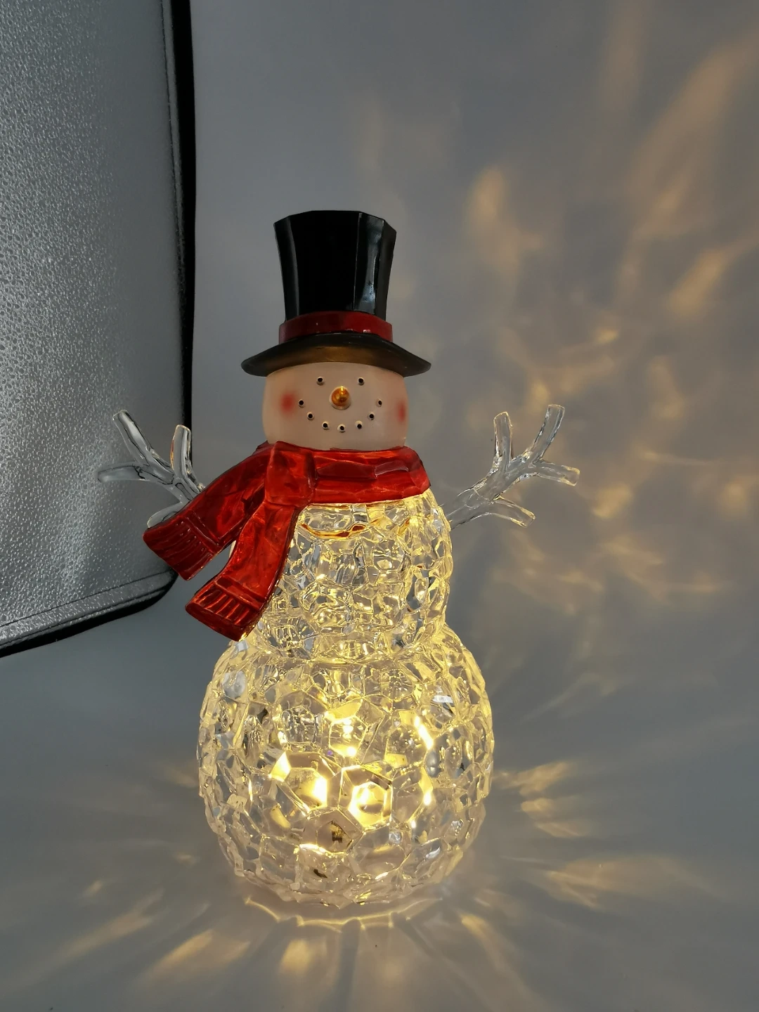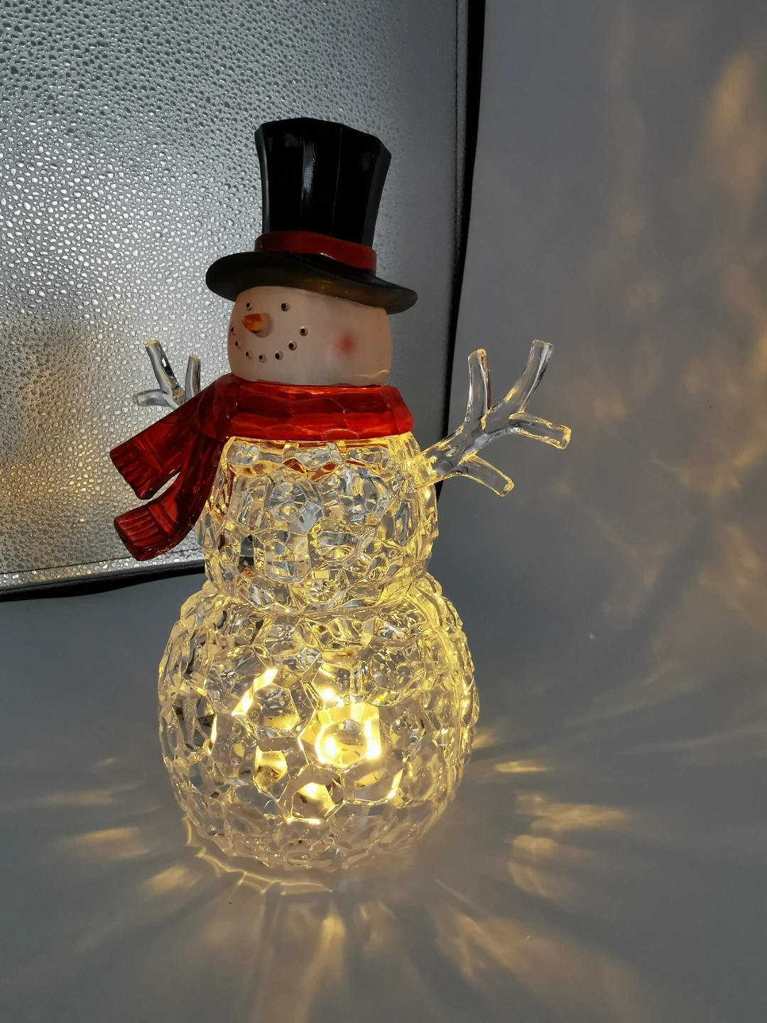 Add a touch of festive charm to your home with this delightful lighted snowman figurine. This adorable piece is new, features a cheerful design that captures the spirit of the season. It requires 3xAAA batteries. This would make a wonderful addition to your holiday decor. I think it would look great on a mantle.