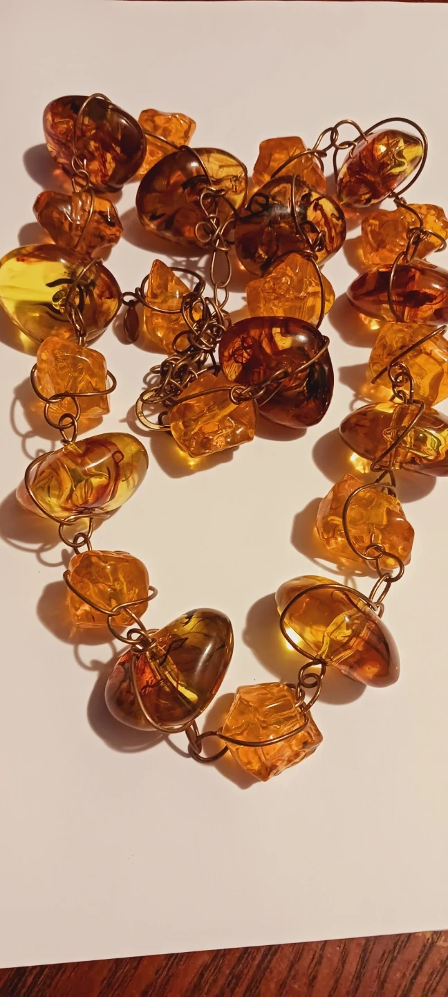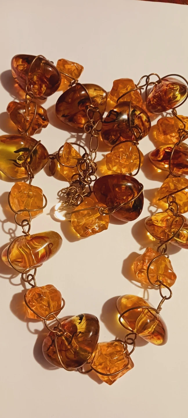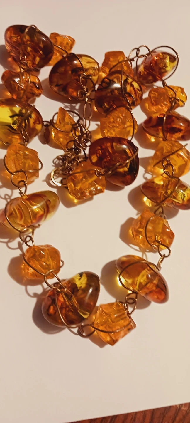 Gorgeous Baltic Honey Amber Statement Necklace. Amber beads are uniquely shaped and connected with a delicate metal chain. It's a lovely vintage statement piece!!! 28" long. Excellent condition. ALL MY PRICES ARE NEGOTIABLE !