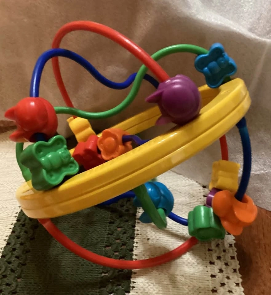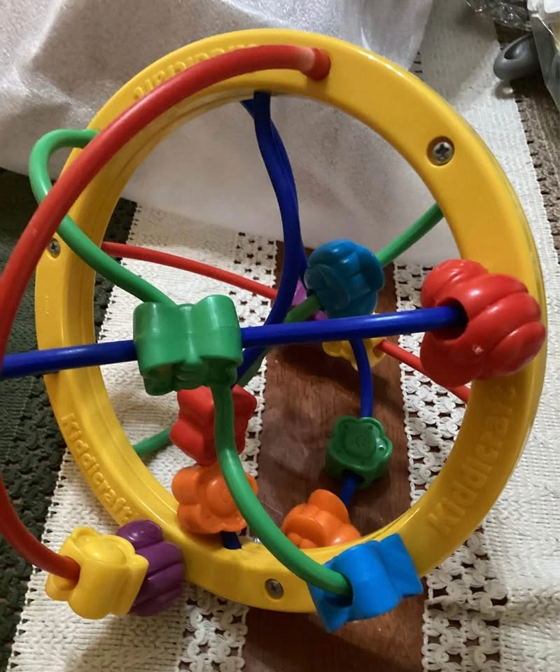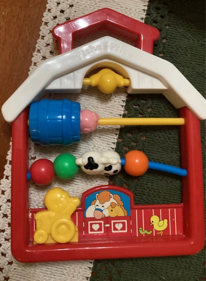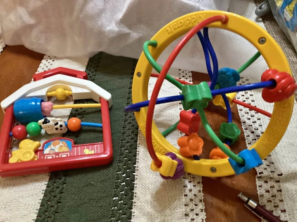 Both toys are in great condition, and are fun, colorful, and stimulating for babies and toddlers. Fisher Price makes the farm toy and Kiddicraft created the butterfly and flower ball toy. I used to love seeing my kids curious faces as they watched and touched these toys. The farm toy is great for travel, too, in cars or strollers. The objects are made just the right size for tiny hands.
