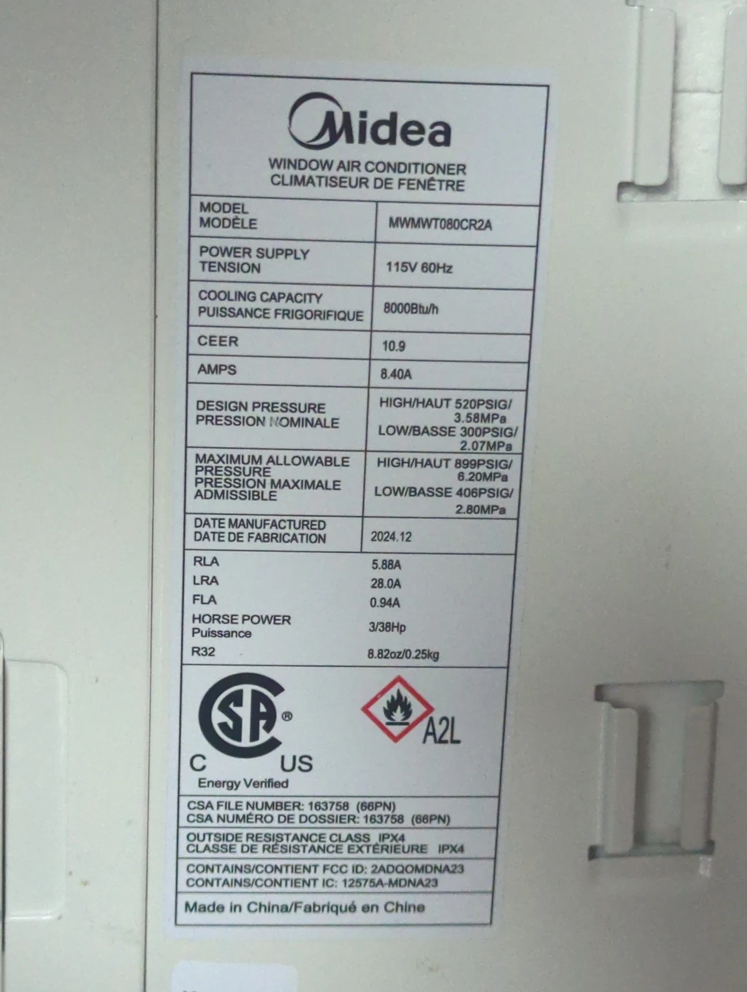 I'm selling a Midea Window Air Conditioner in excellent condition. It's a great way to keep cool during the summer months! The model number is MWMWT080CR2A. It was manufactured in 2024 December.