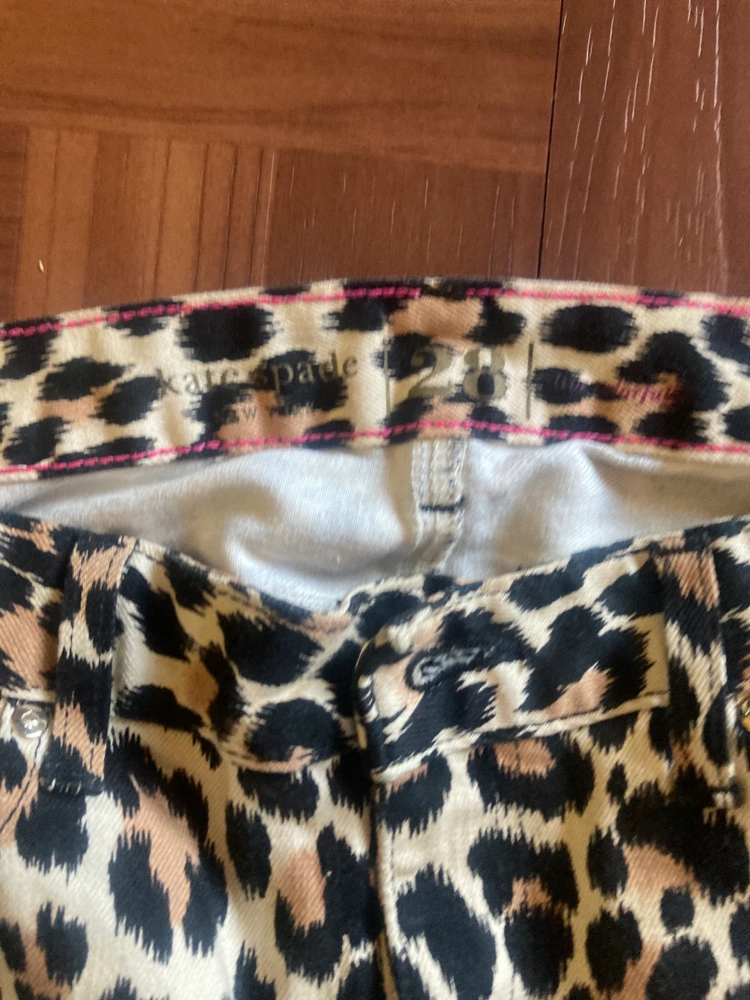 Selling a pair of Kate Spade jeans in a fun leopard print! They are a size 28and feature a stylish design. Perfect for adding a bit of flair to your wardrobe