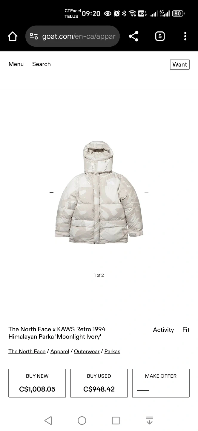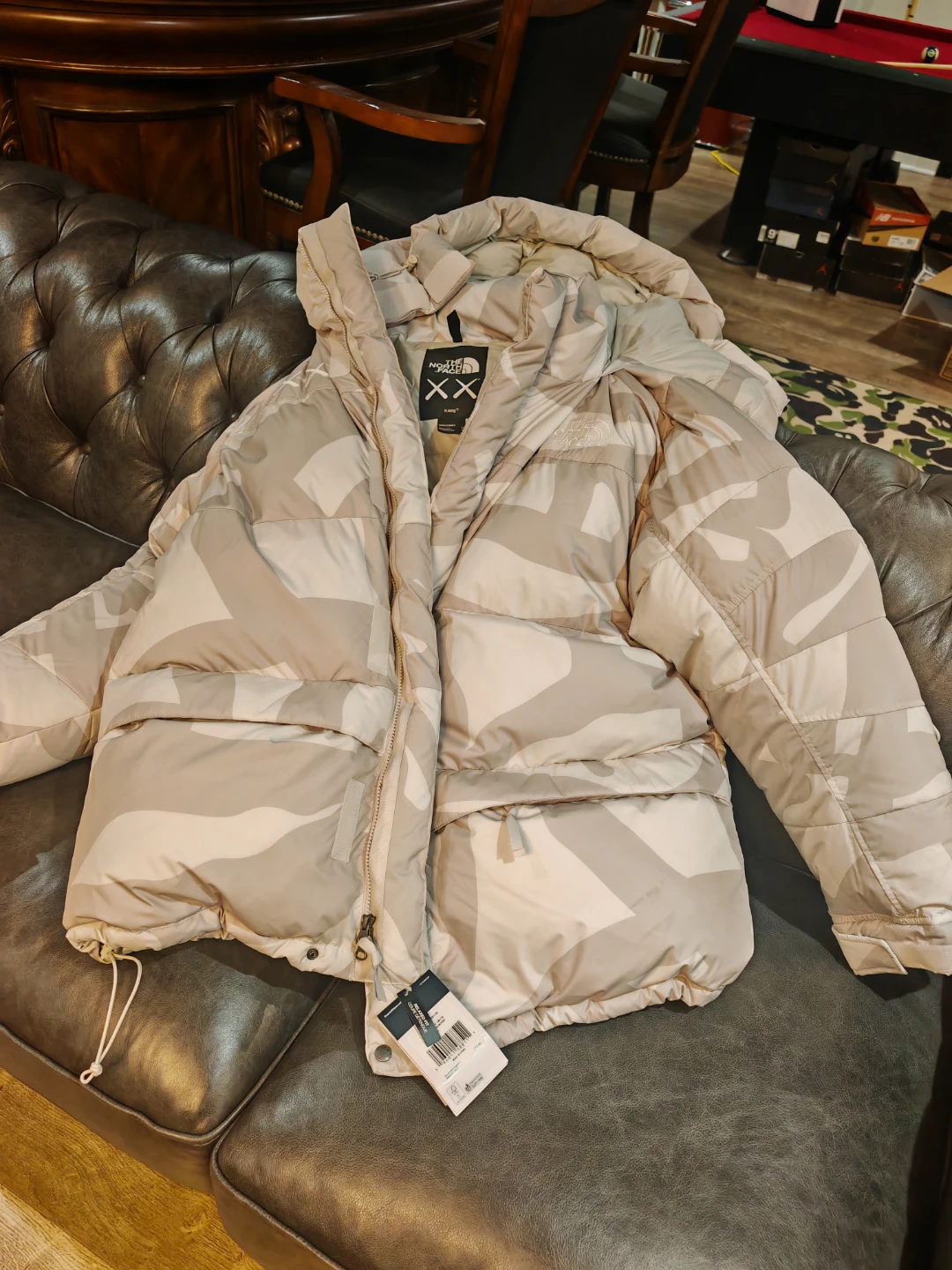 This is a Auth Brand new with Tag The North Face x KAWS Retro 1994 Himalayan Parka in Moonlight Ivory. It's a relaxed fit and size Men XL. The original price was $974.99