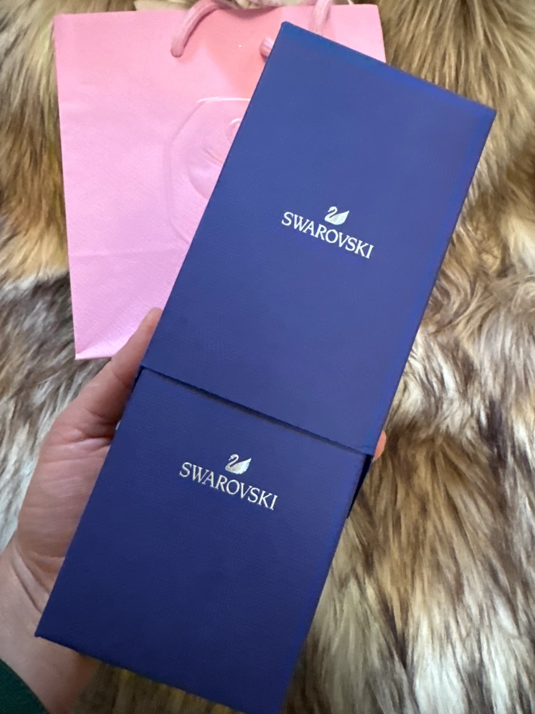 These Swarovski gold tone earrings are brand new and come in their original box! The earrings feature a cute moon and star design with a delicate drop style. Perfect for adding a touch of sparkle to any outfit!