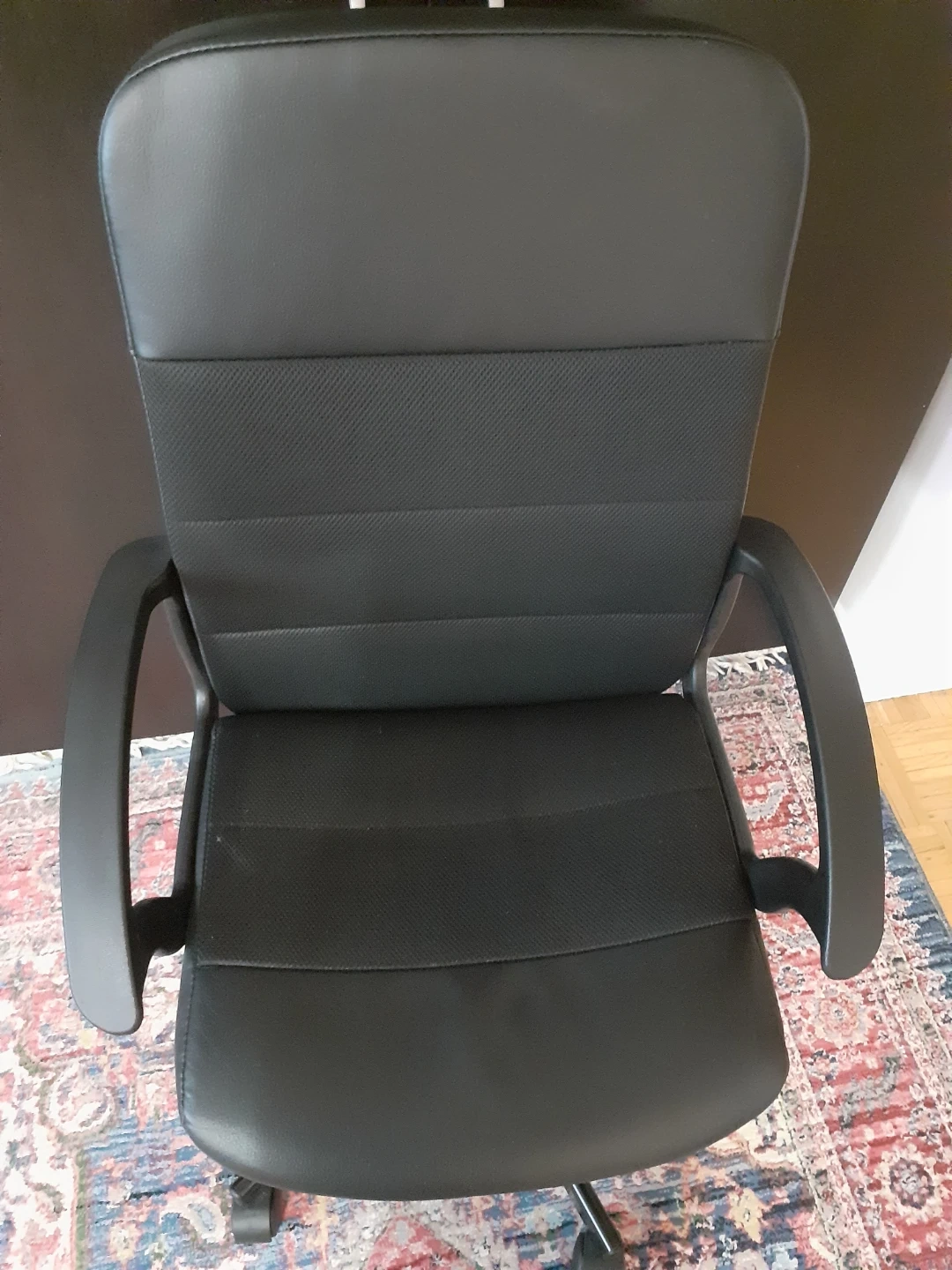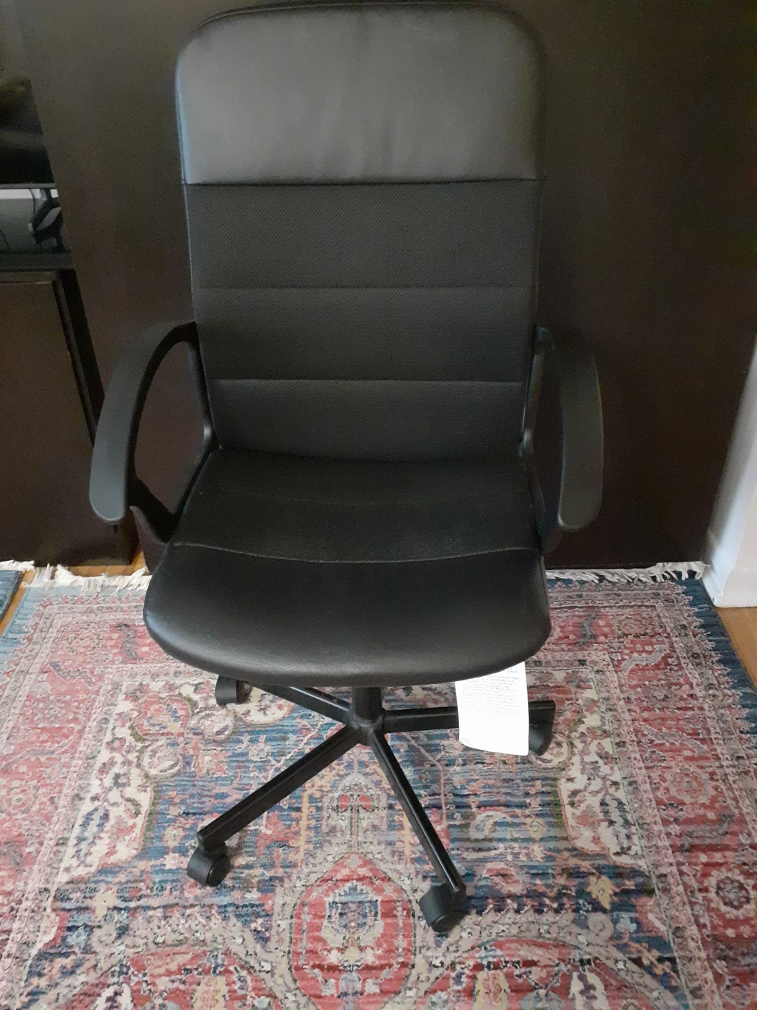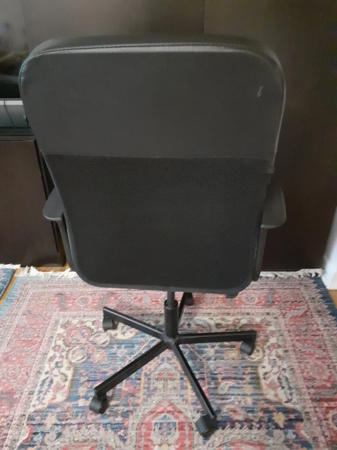 Selling one Ikea black office chairs in good condition. It's perfect for a home office or study space. It has a comfortable backrest and adjustable height. It's ready to go to a new home!