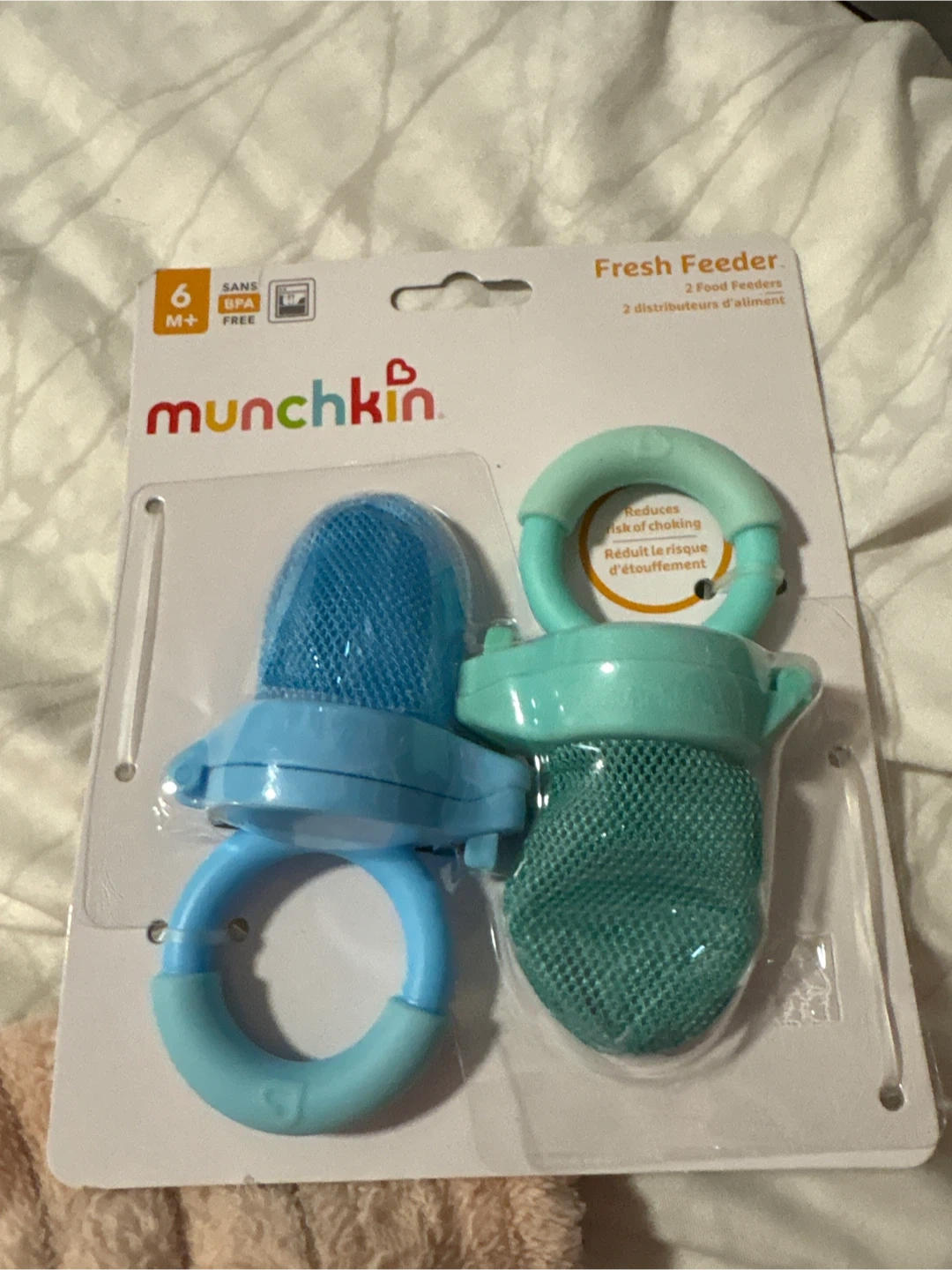 I'm selling a brand new Munchkin Fresh Food Feeder 2-pack! They are designed for babies 6 months and older. These feeders reduce the risk of choking by allowing babies to safely enjoy fresh foods. Perfect for introducing new flavors and textures!