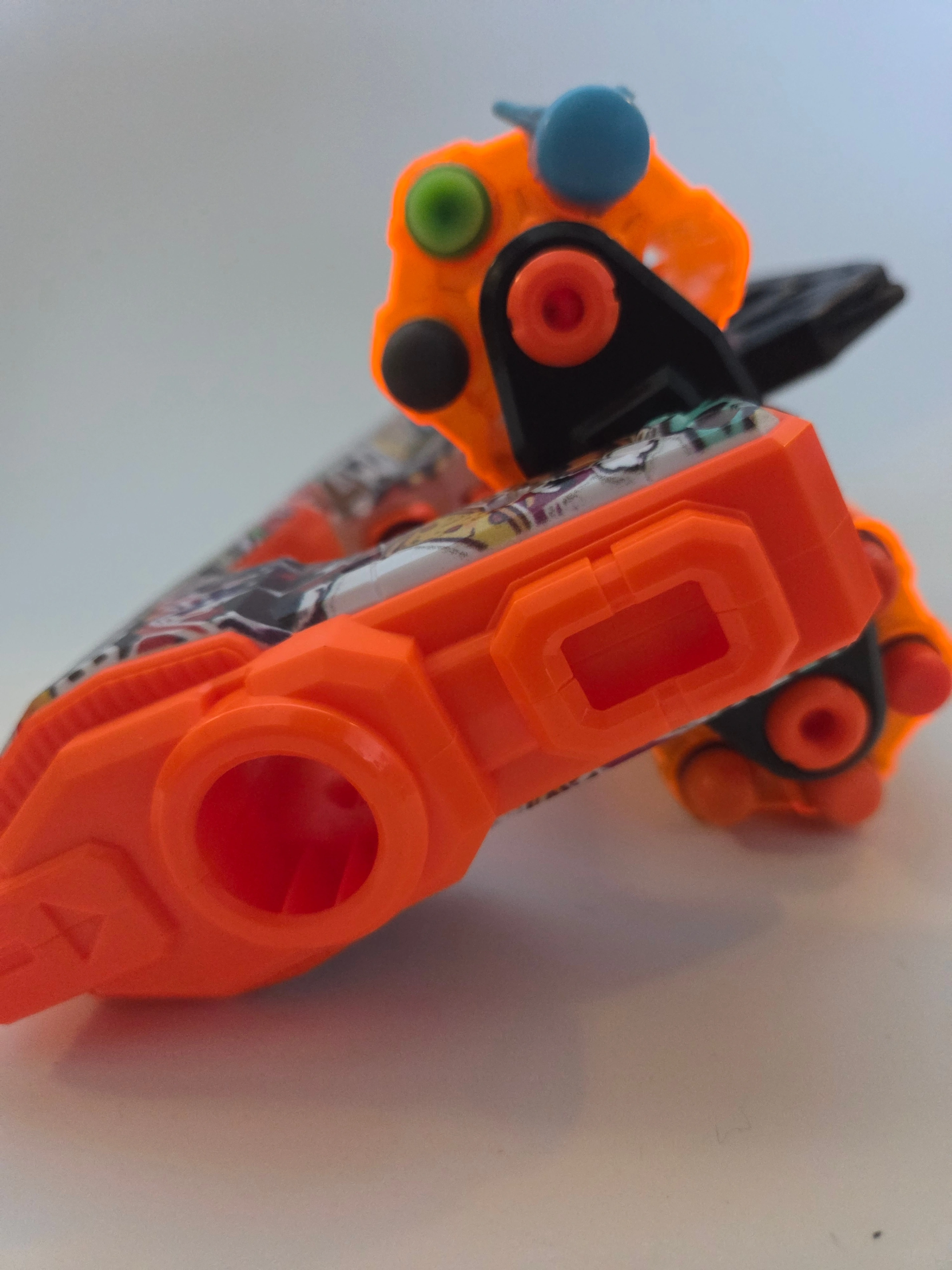 Condition: used, fully working. Cosmetic wear consistent with light play only. Comes with 8 foam darts (mixed brands/colors as pictured) and a few loaded in the drums. Compatible with most standard Nerf-style darts.