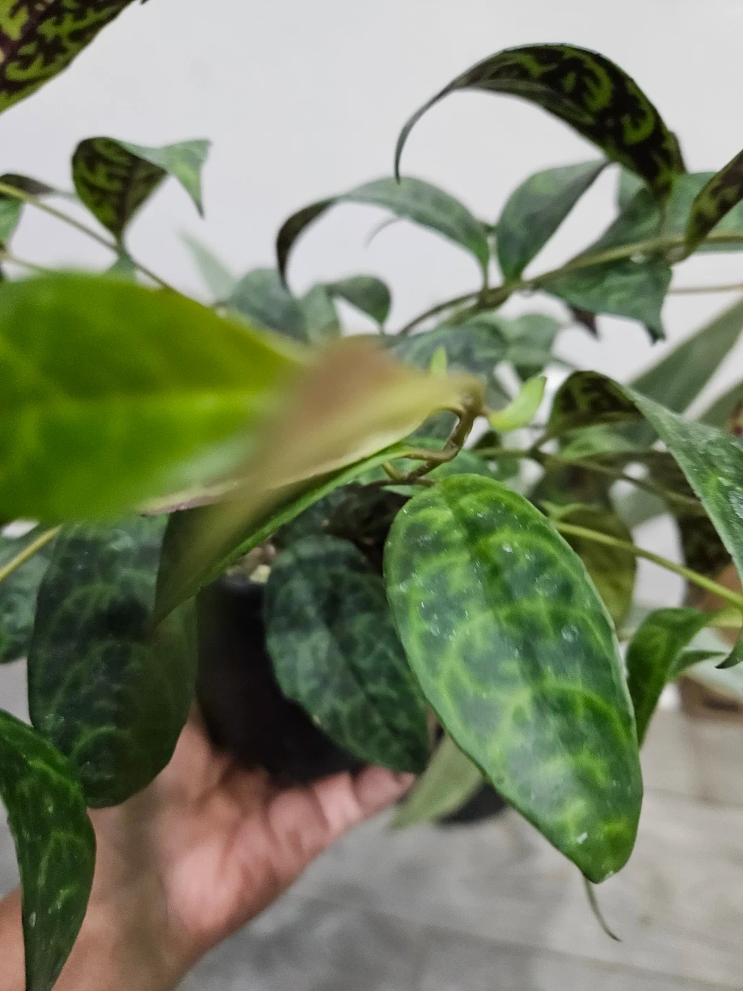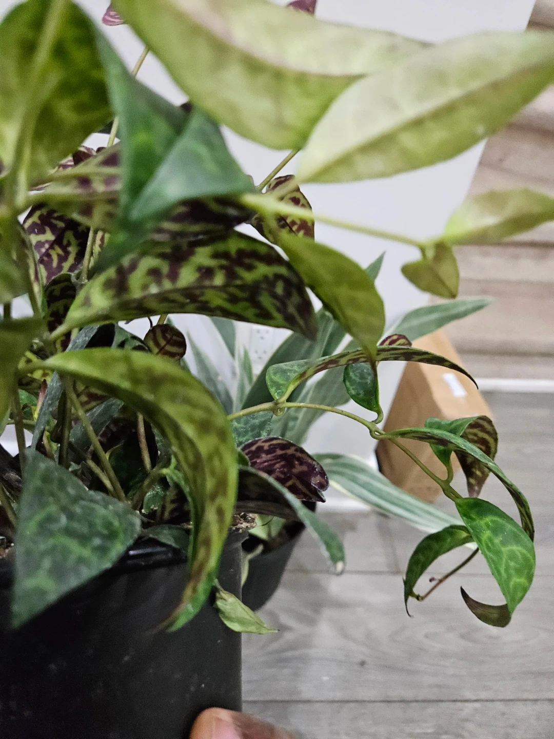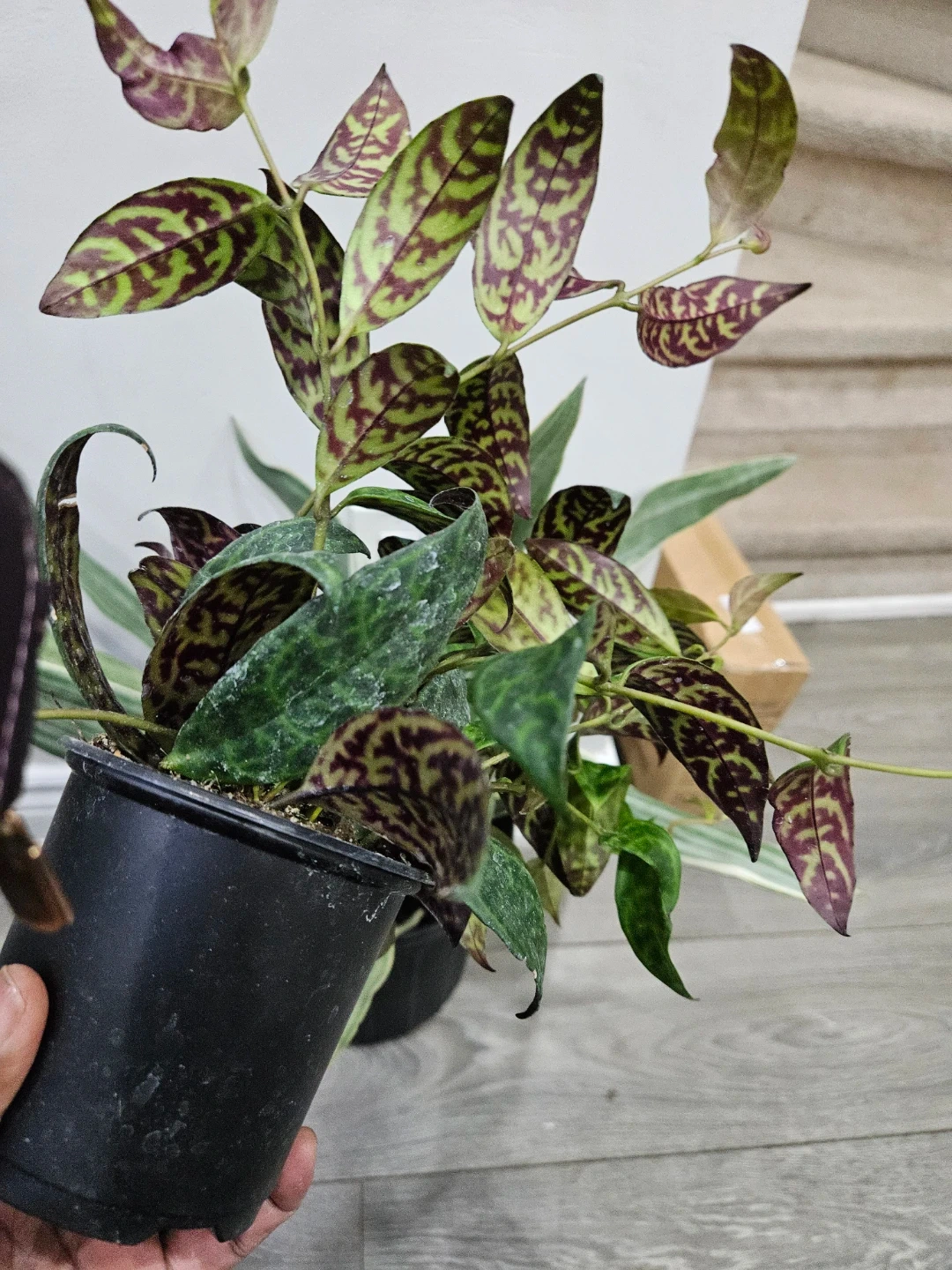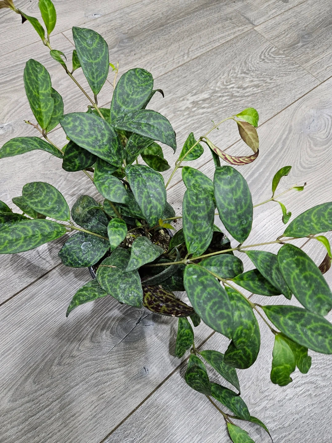 Selling a healthy Aeschynanthus marmoratus, also known as the Lipstick Plant. It has beautiful patterned leaves and is potted in a black plastic pot. Perfect for adding some greenery to your space!