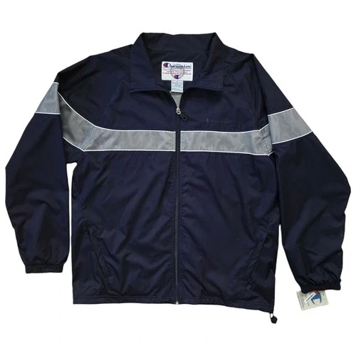 Champion Windbreaker Jacket Mens Size XL Navy Gray