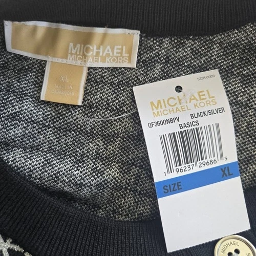 Michael Kors Cardigan Sweater Womens Size XL Black Silver Knit M
