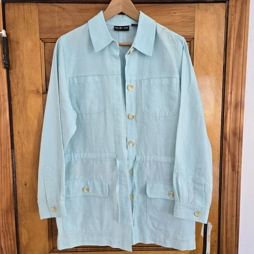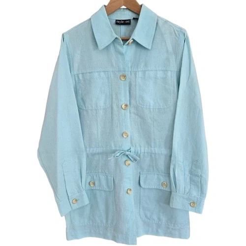 Style & Co. Shirt Women Medium Blue Sea Mist Button