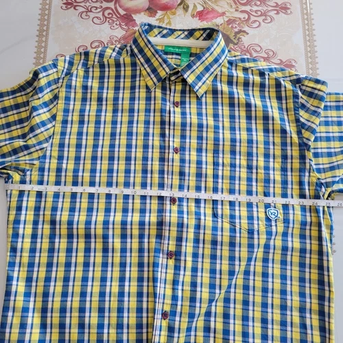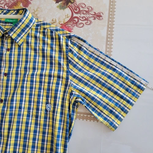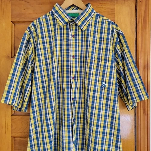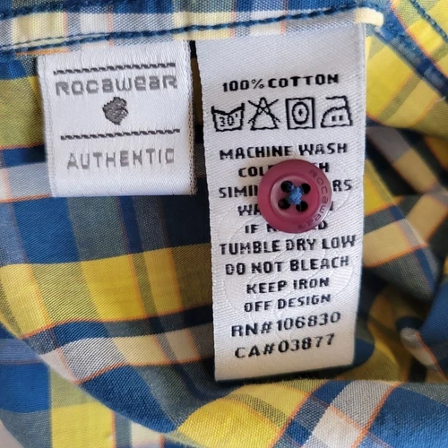 Rocawear Button-Up Shirt Mens XL Blue Yellow Plaid Short Sleeve
