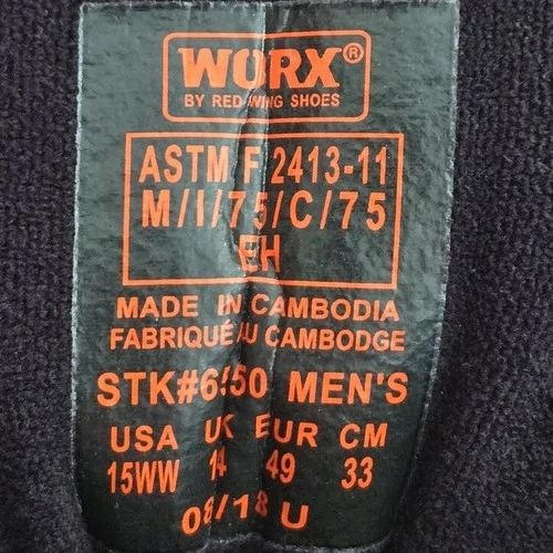 Red Wing Worx Safety Toe Oxford Shoes 15WW Black 6550